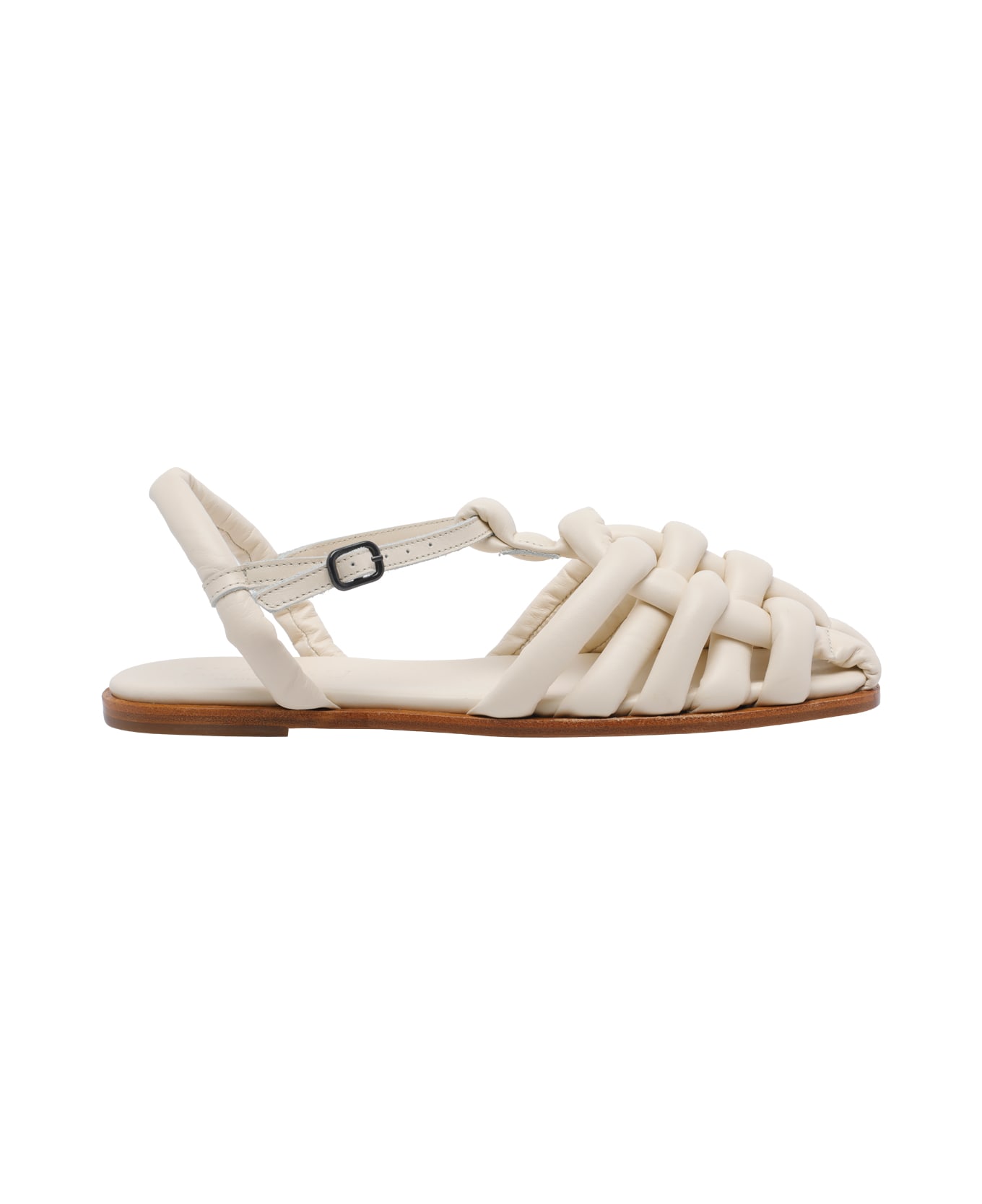 Hereu white Cabersa sandals, leather upper, flat model
