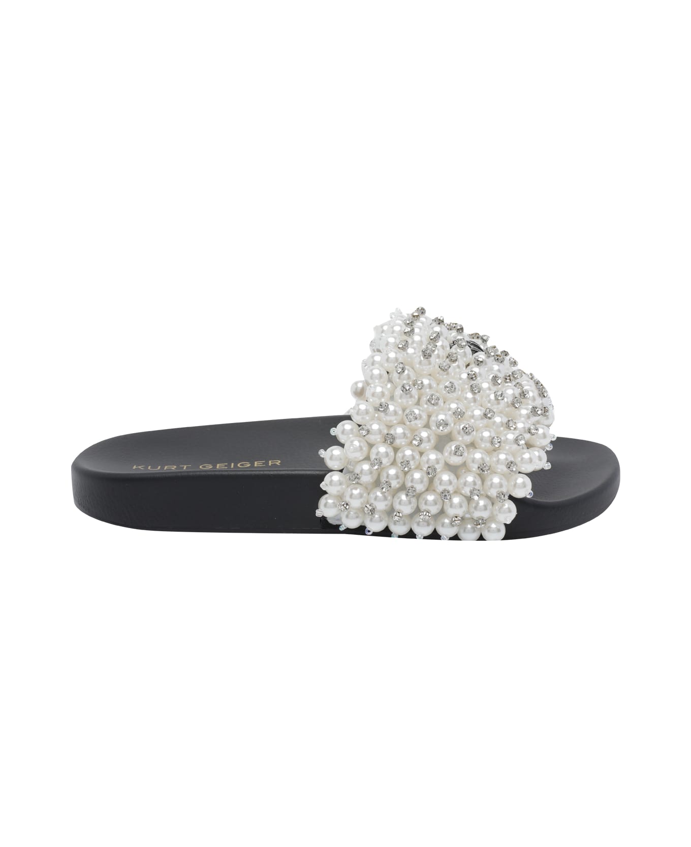 Kurt Geiger white Meena Eagle sandals, round toe, frontal logo, applications