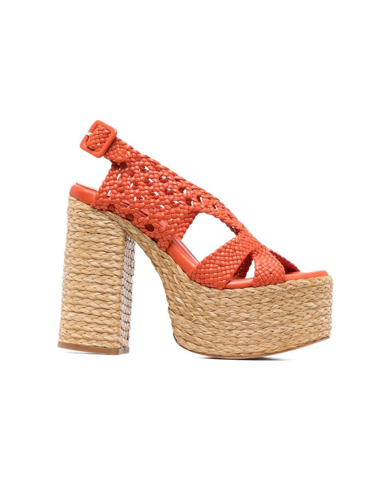140mm open-toe sandals from PALOMA BARCELÓ featuring burnt orange, calf leather, open toe, side buckle fastening, branded insole and high block heel.