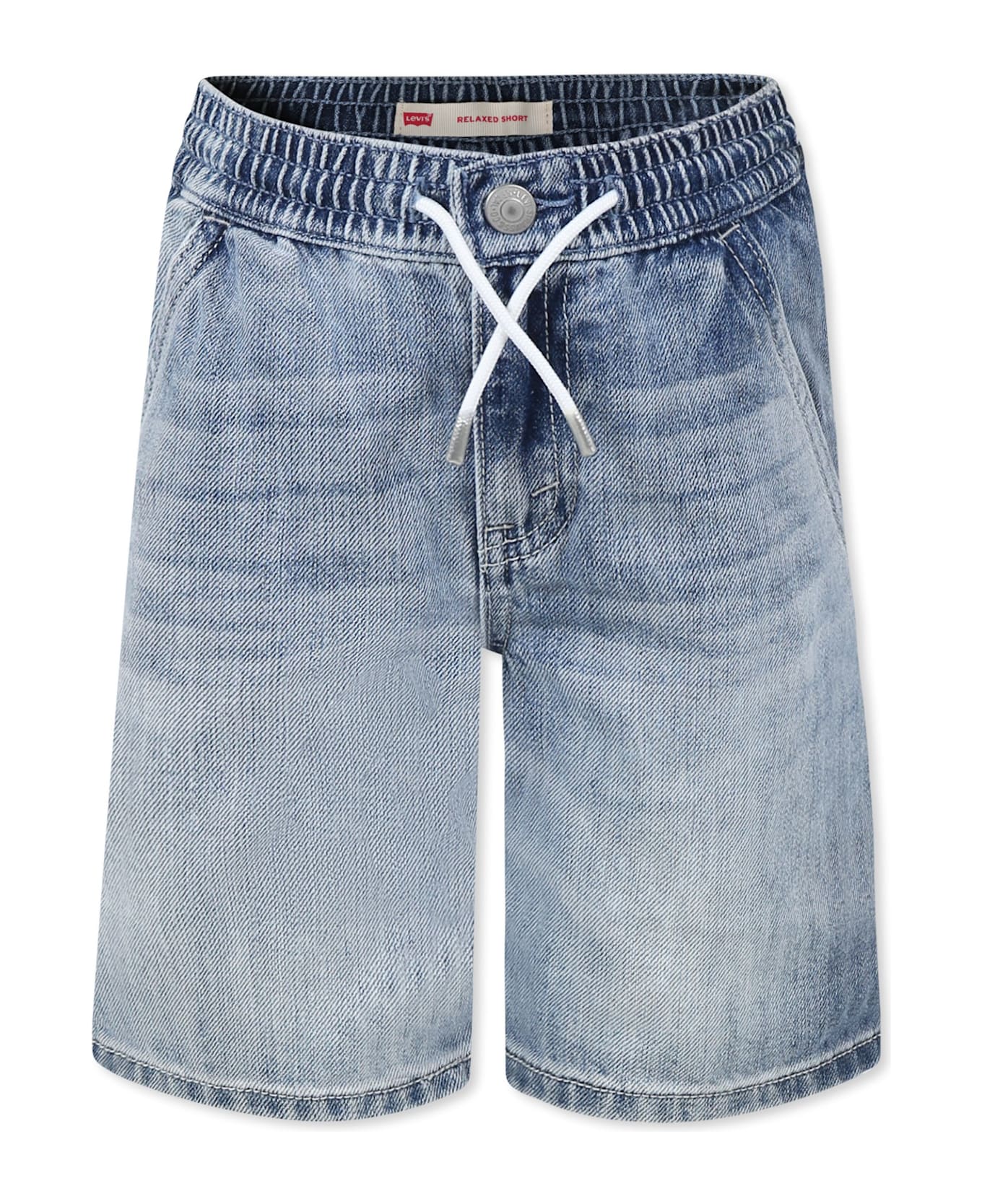 Denim shorts with elasticated waist, front zip and hook fastening, drawstring, elasticated waist, side pockets and back pocket. They are embellished with a logo patch on the back.