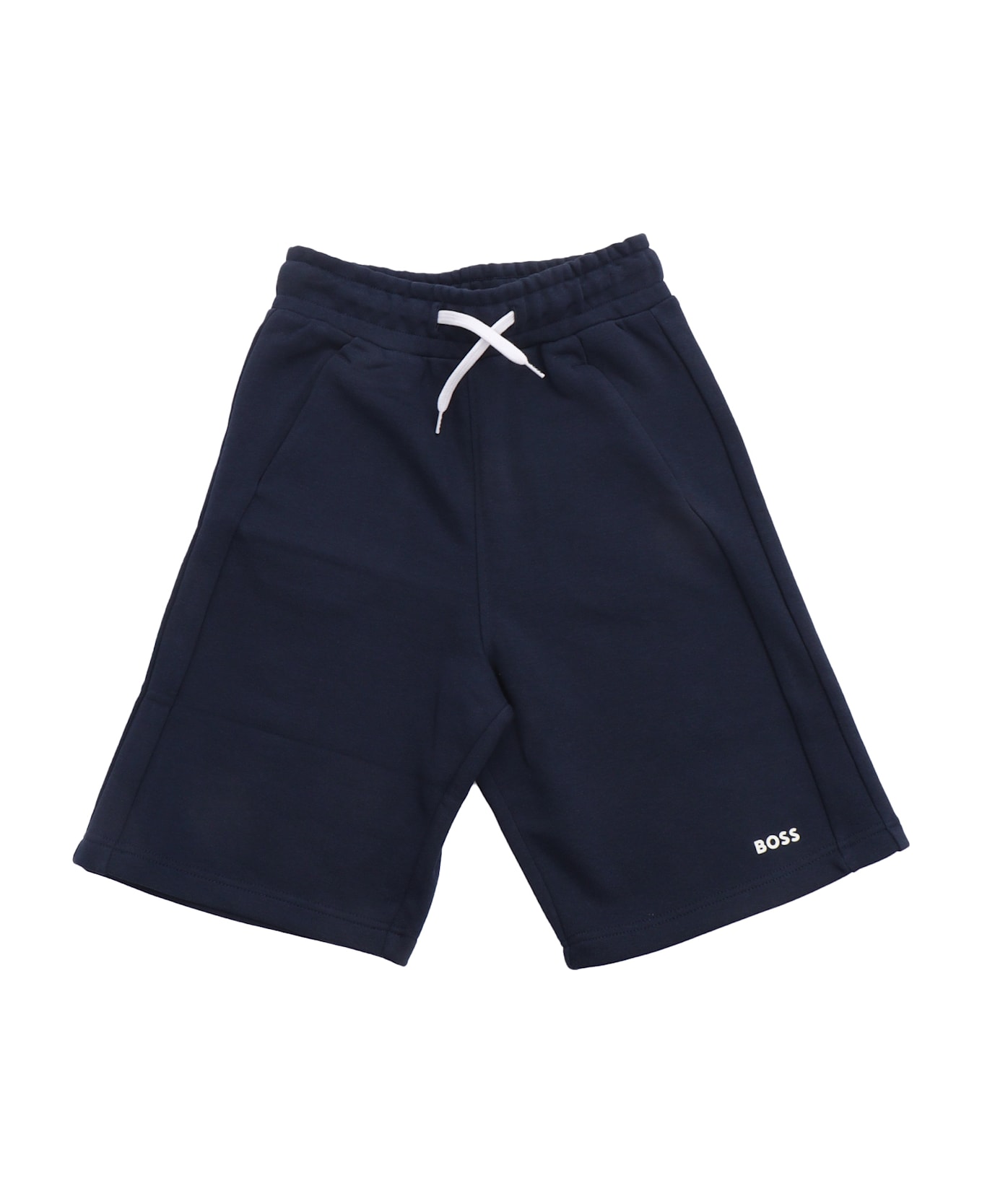 Jogging shorts in cotton/polyester fleece, side pockets, elasticated waistband with drawstring, printed logo on lower leg. REGULAR FIT