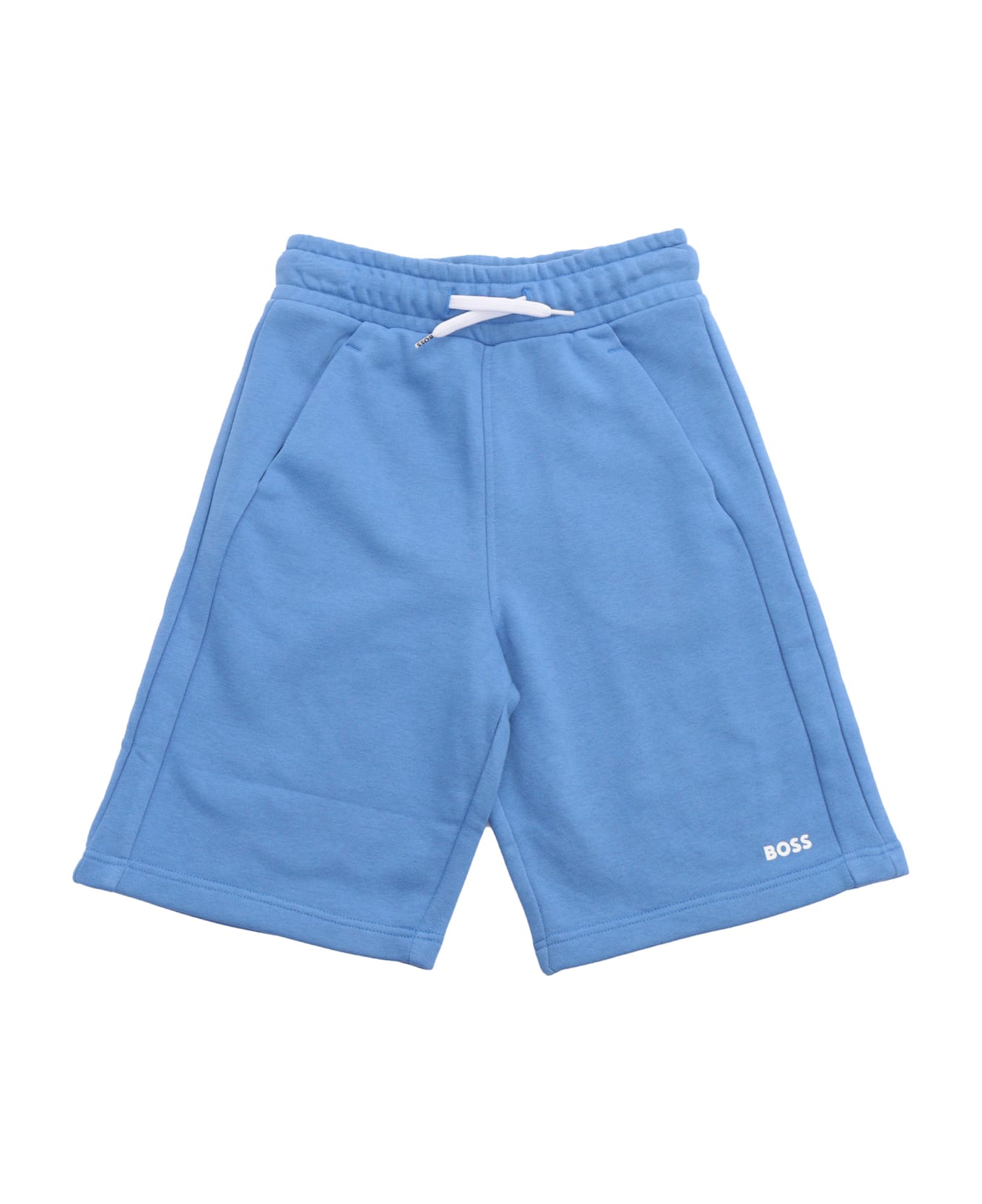 Jogging shorts in cotton/polyester fleece, side pockets, elasticated waistband with drawstring, printed logo on lower leg. REGULAR FIT