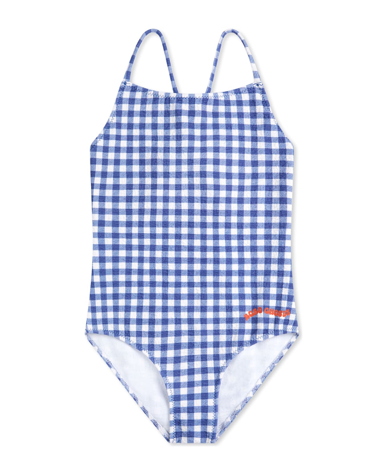 Blue vichy swimsuit, with adjustable straps and neckline. It is embellished with logo on the front.