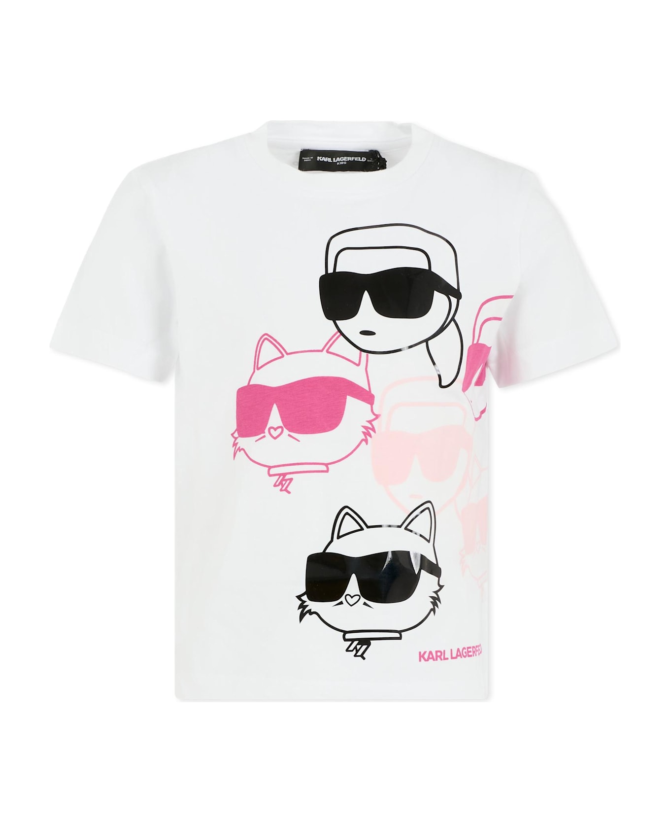 White T-shirt For Girl With Choupette And Karl Lagerfeld