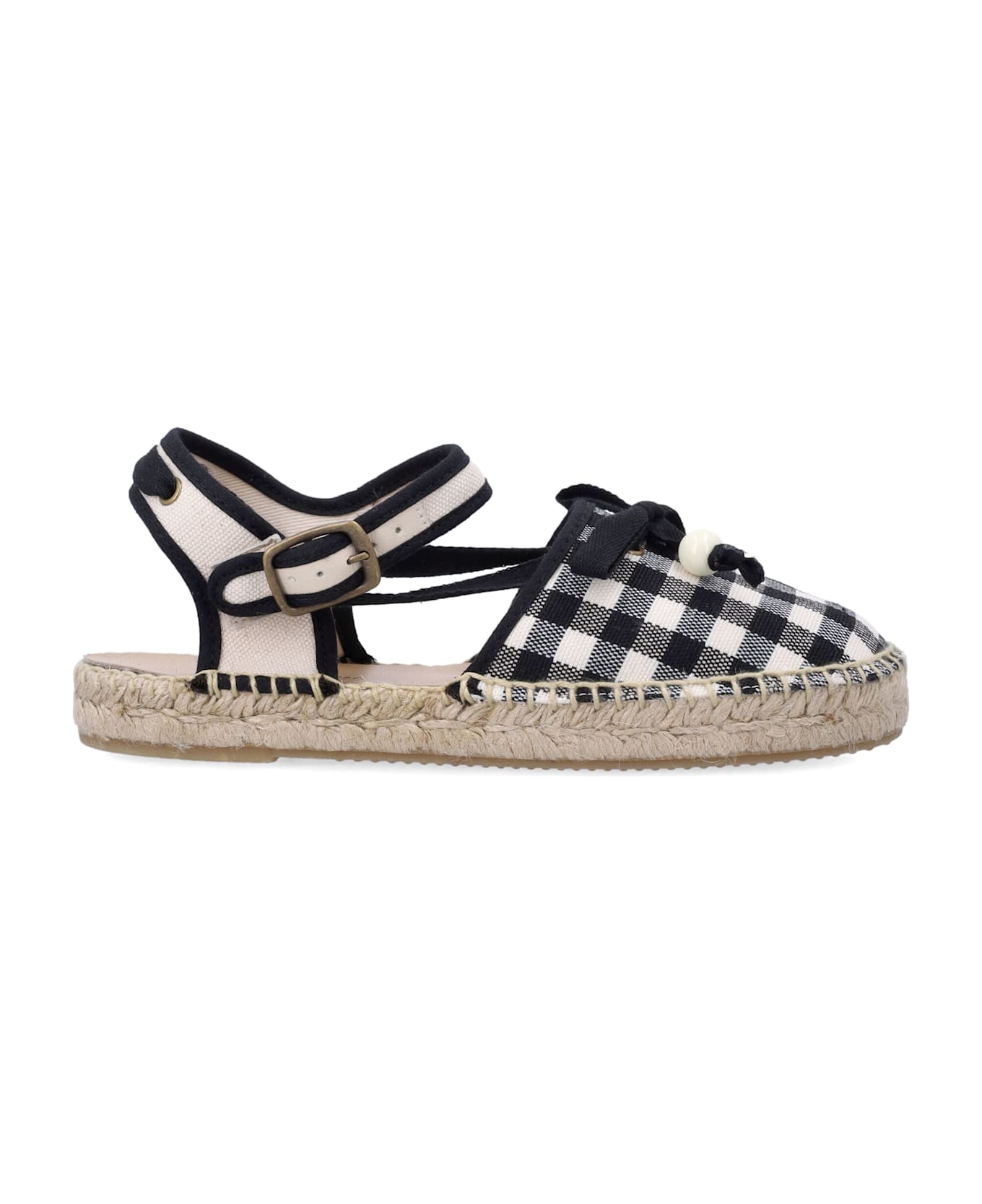 The Bonpoint Evila Gingham Espadrilles Combine Playful Charm With Classic Espadrille Style. Featuring A Checkered Gingham Print, A Decorative Bow, And A Signature Cherry Stud, They Bring A Sweet And Stylish Touch To Any Outfit. Crafted With Recycled Materials, They Also Include A Round Toe And A Striped, Buckled Ankle Strap For A Secure Fit. Checkered Gingham Print Decorative Bow Signature Cherry Stud Round Toe Striped Buckled Ankle Strap