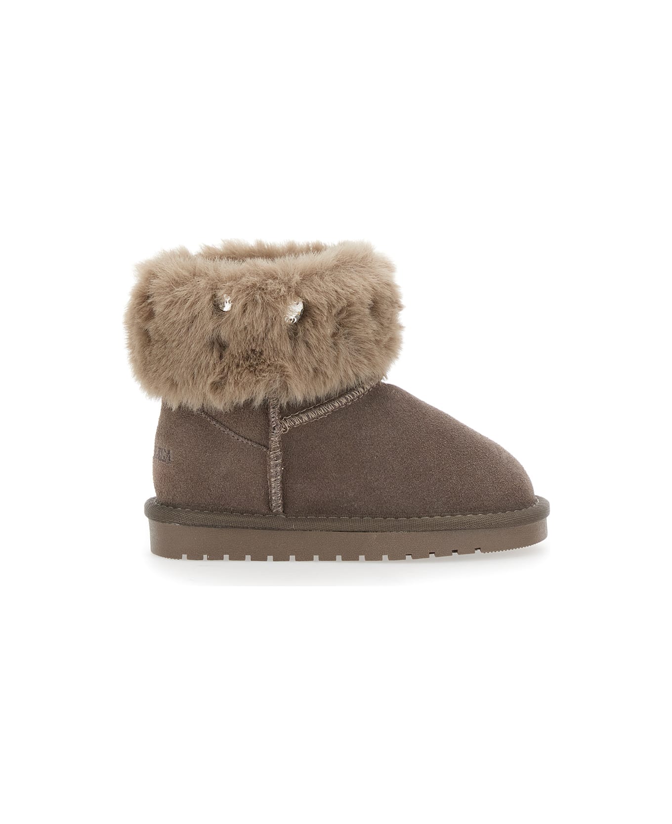 Brown Ankle Boots With Faux Fur Design In Suede Girl
