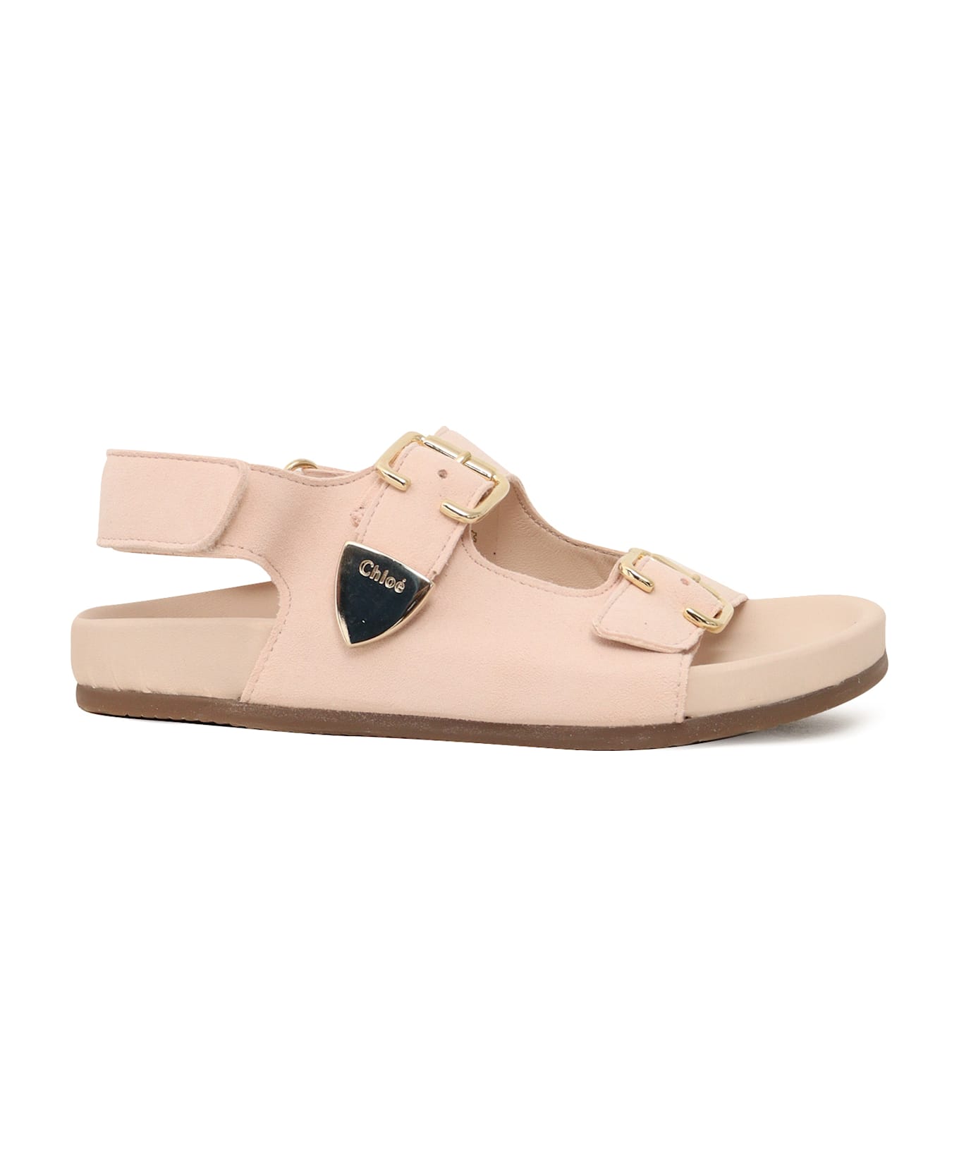 Cow suede leather sandals. Adjustable closure. Chlo embossed branding at the back. MADE IN PORTUGAL. Sold from sizes 20 to 35. Composition: 100% TENCEL FABRIC 2 100% TENCEL FABRIC 3 100% ST