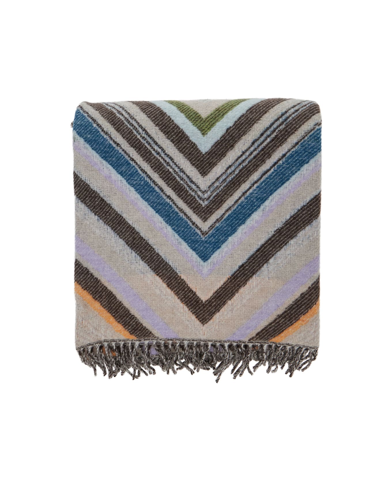 'chevron' Multicolor Blanket With Zigzag Motif And Fringed Hem In Wool Blend Home