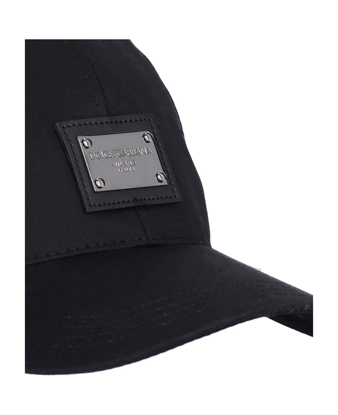 Dolce & Gabbana baseball cap in black cotton blend with metal logo plate at the front, curved visor, adjustable strap at the back.