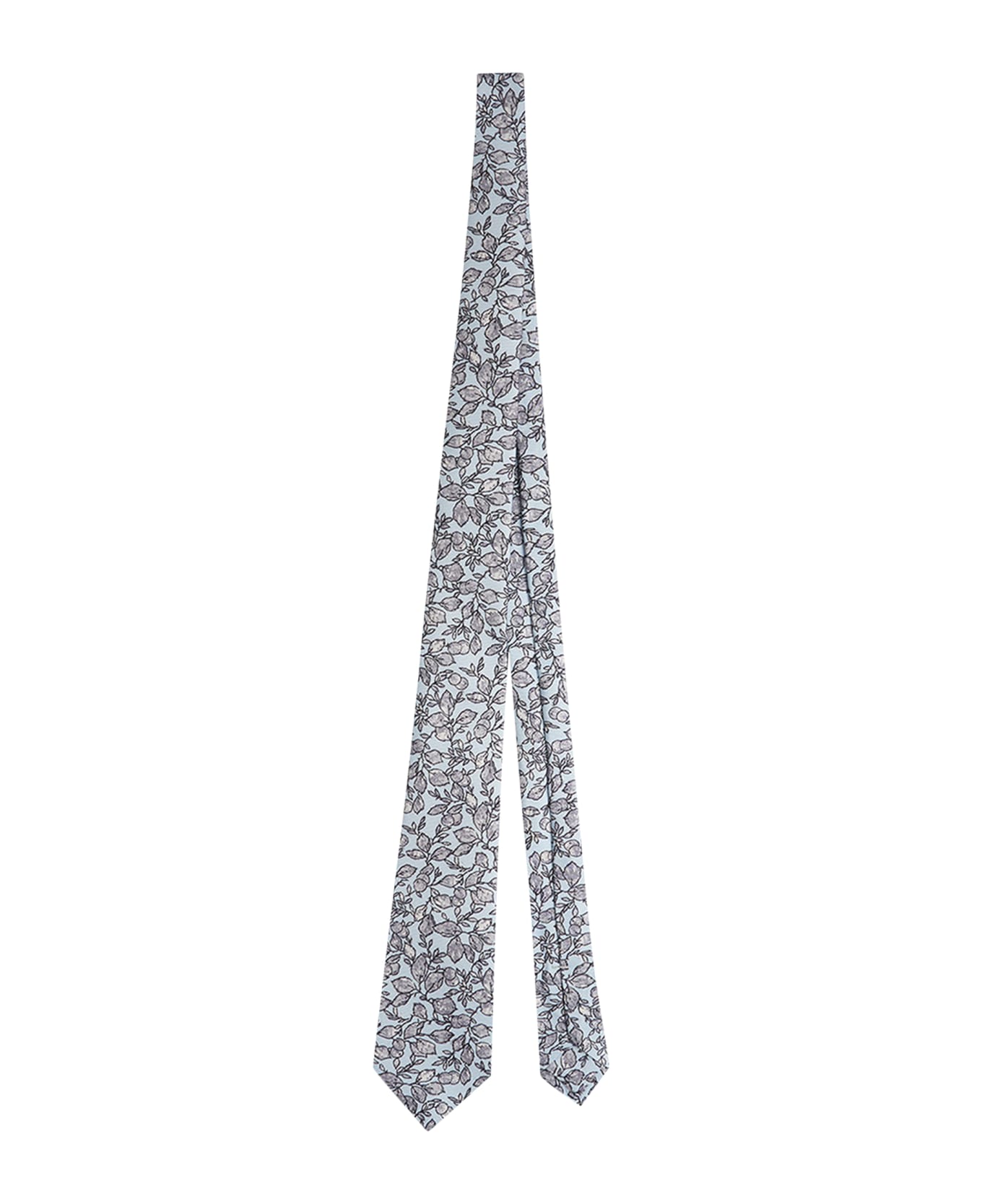 This silk tie features a powder blue, grey and white floral design. This Kiton tie has been handmade using the ''seven fold'' technique, drawing upon an ancient tradition of Neapolitan tie-makers. This technique takes its name from the way the tie is constructed: it is made from a panel of silk that is folded diagonally seven times, from the sides inwards, without any cuts or linings being added, and all steps are carried out by hand. Length: 1. 48 m - Width: 8. 5 cm. To keep your Kiton tie looking flawless, we recommend that you store it flat and untied, and prevent it coming into contact with water and chemicals. We recommend professional laundering and pressing.