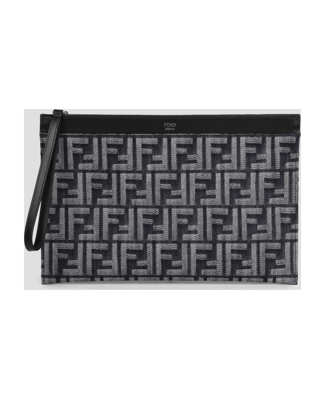 Fendi flat pouch in blue denim with jacquard FF motif. - SS23