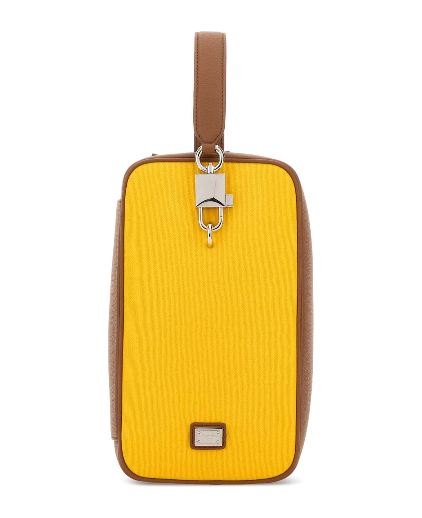 Two-tone Leather And Canvas Lock Handbag from Dolce & Gabbana