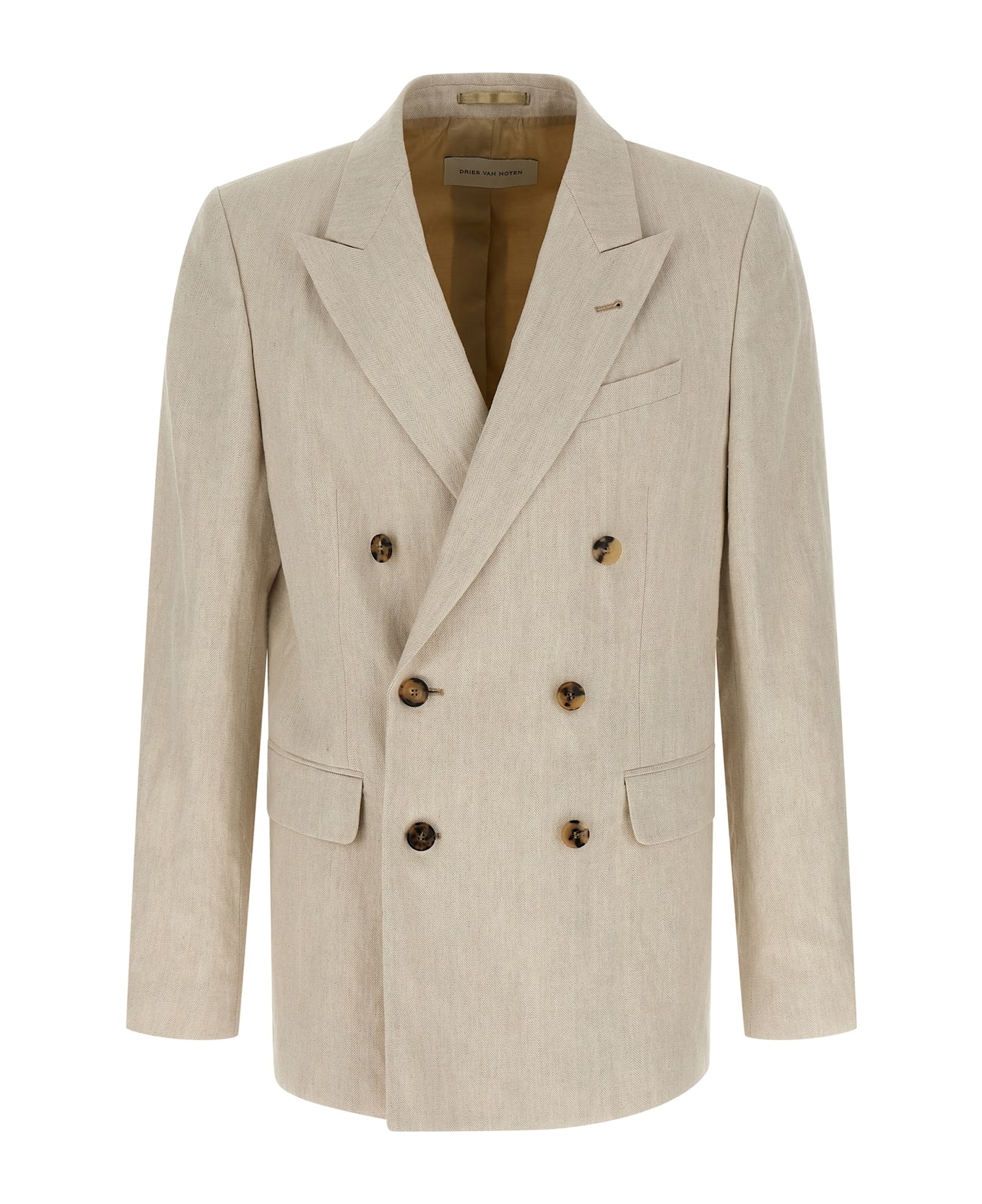 'Barry' double-breasted blazer in cotton and linen blend with herringbone pattern, front horn button closure, peak lapels, breast pocket, flap pockets, structured shoulder strap, cuffs with open buttonholes, back vents, inner pocket, viscose lining.
