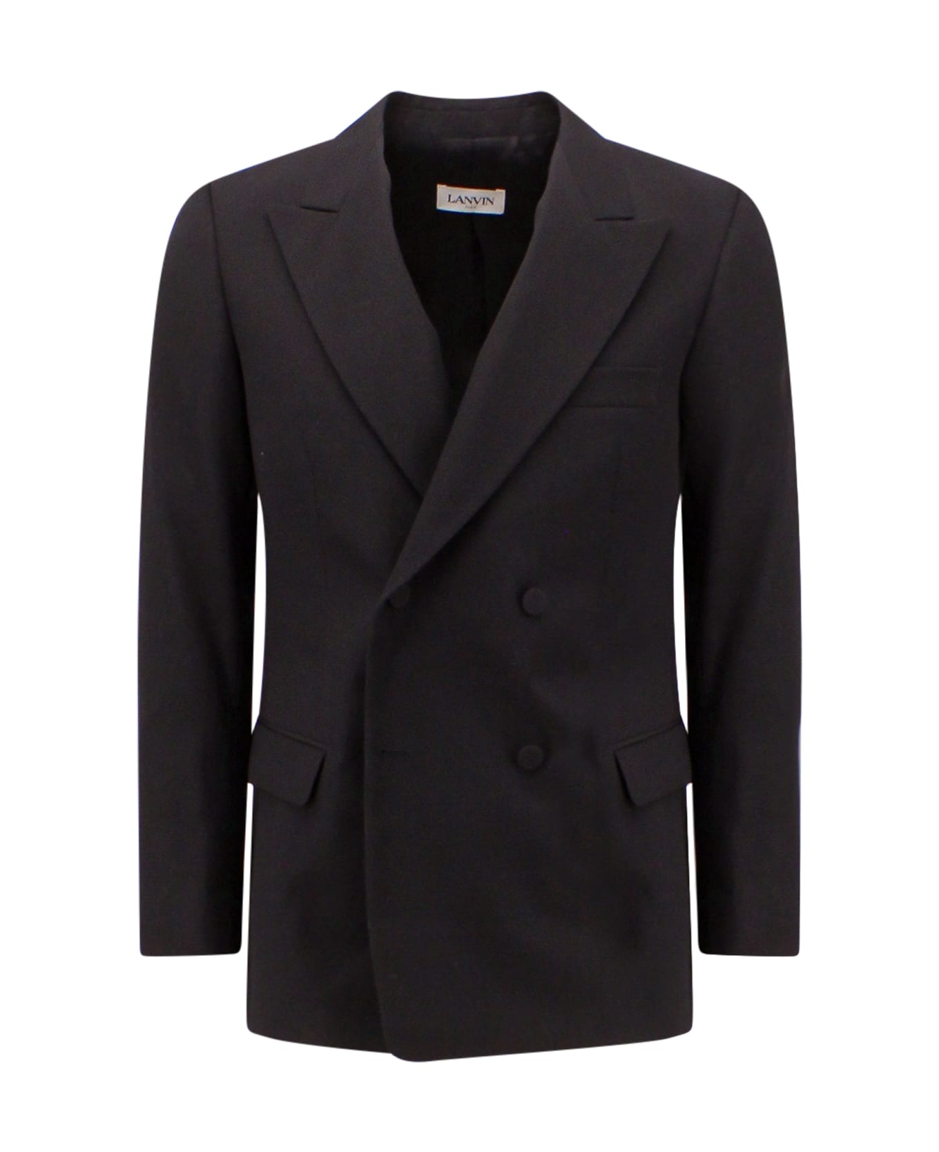 - Double-breasted Closure With Covered Buttons - Maxi Peak Lapel - Closure With Flap On The Front - Made In Italy - 100% Wool - Lining : 100% Cupro