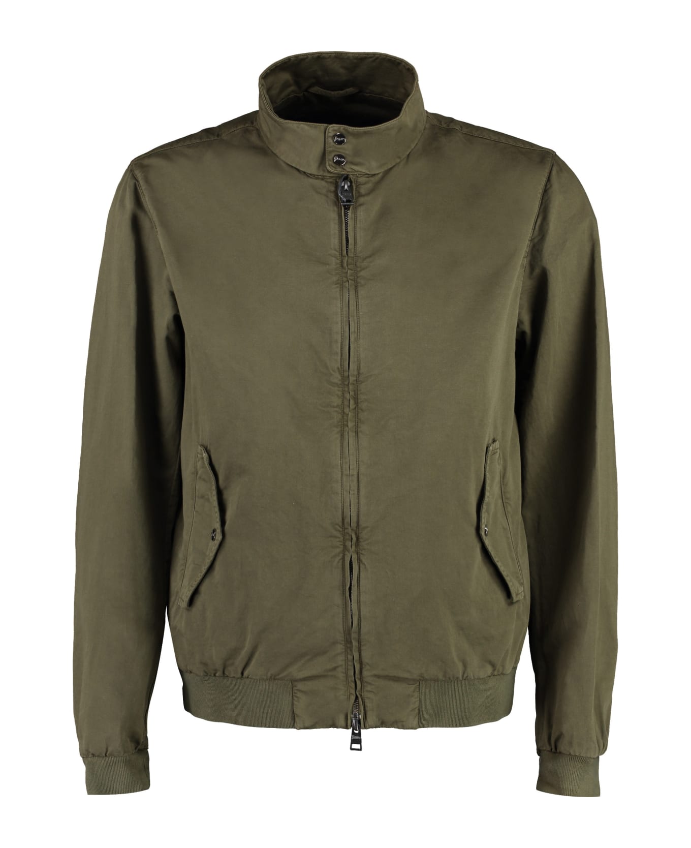 Two buttoned front flap pockets ribbed knit cuffs and bottom edge 73% cotton, 27% linen Composition: 73% % Cotton, 27% % Linen