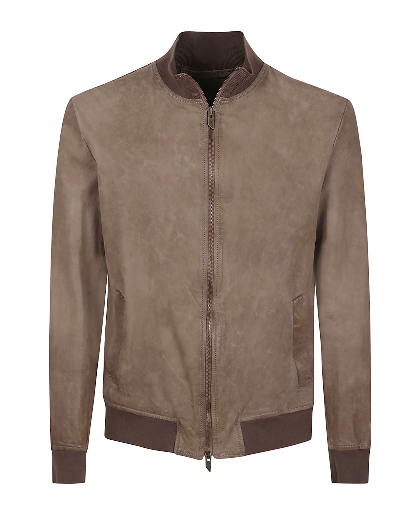 Leather jacket by SALVATORE SANTORO. Double slider zip closure; two slanted pockets; ribbed elastic trim. Regular fit design.