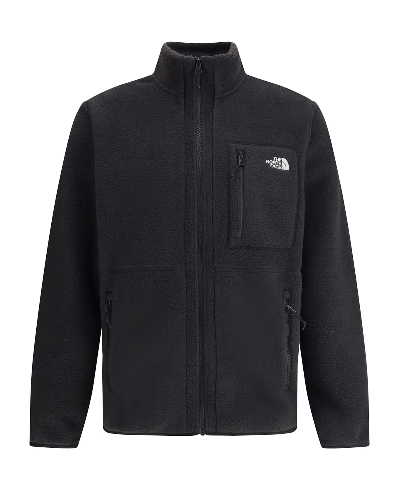 The yumiori fleece jacket by the north face is a functional, modern garment perfect for outdoor activities or for a casual, sporty look. it features a high collar that offers protection and comfort, while the front zipper closure provides convenience and an adjustable fit. the two side zippered welt pockets are ideal for storing small items safely, while the vertical zippered patch pocket on the front adds an additional functional element. the iconic contrasting monogram detail on the pocket lends a distinctive touch to the design, making this jacket easily recognizable and on-trend.
