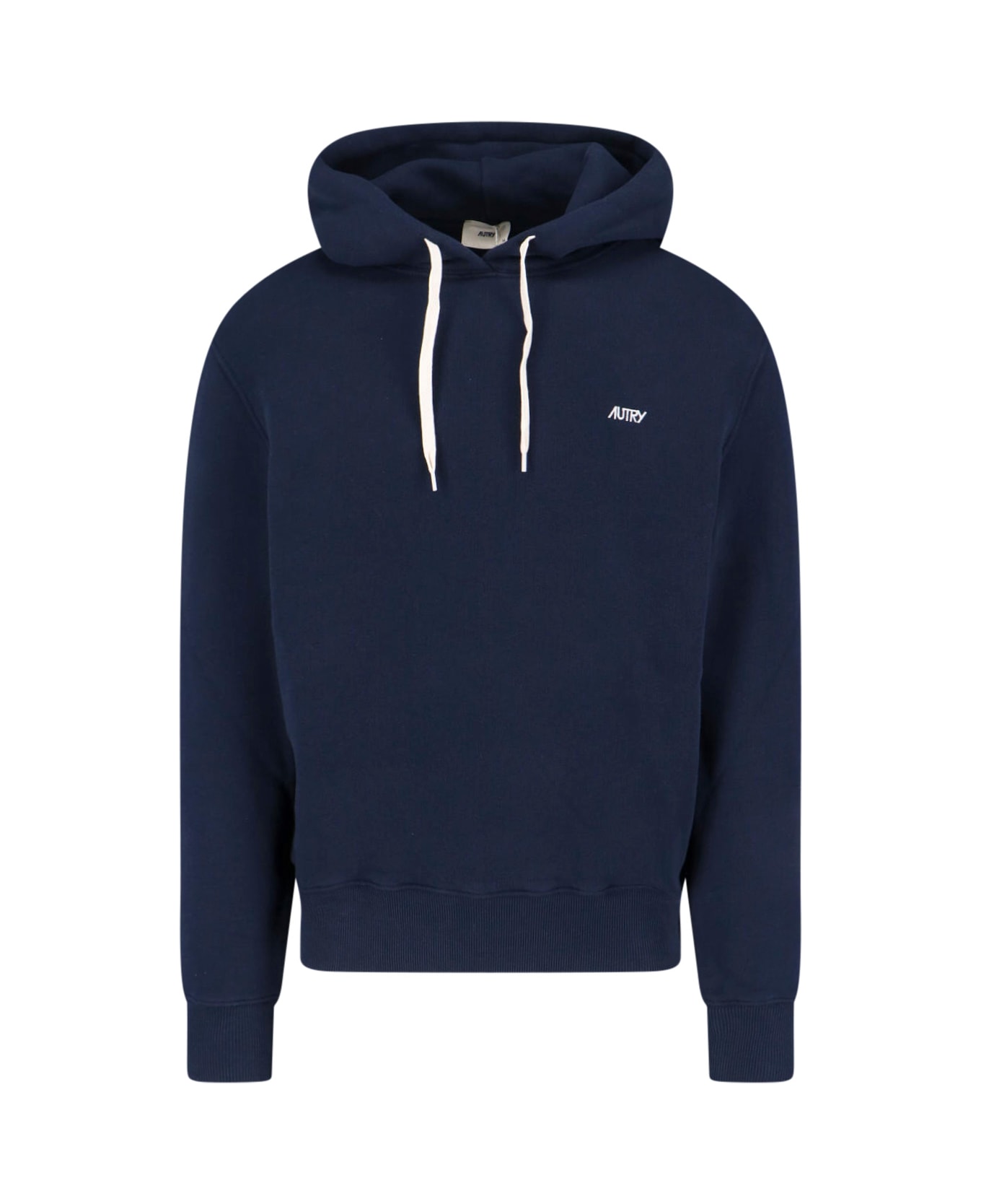 Autry blue cotton hoodie with drawstring hood, long sleeves, contrasting logo on the front, ribbed trim, straight hem.