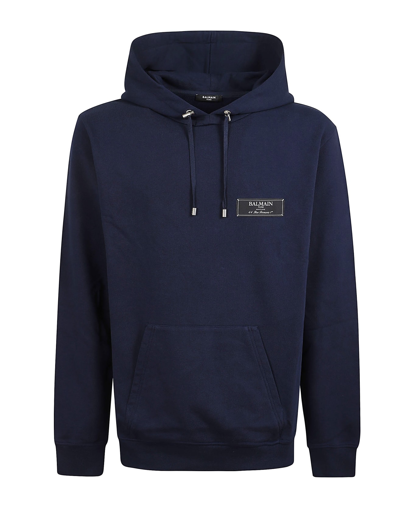 Pure cotton sweatshirt BY BALMAIN. Adjustable hood with drawstring; long sleeves; round neckline; sleeve pocket; profiles with ribbed elastic. Loose fit design. Fabric label detail with Pierre Balmain logo on the front.