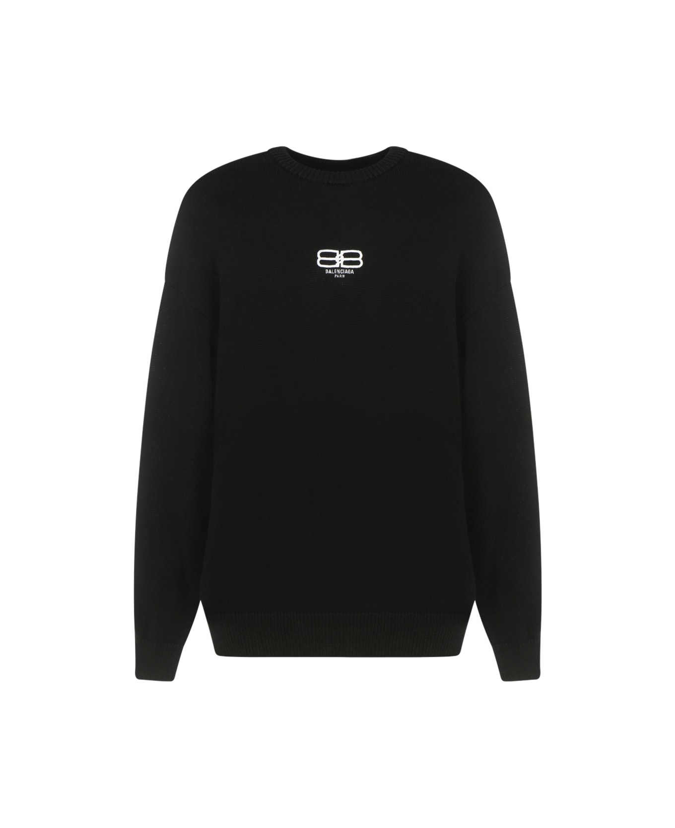 Cotton sweater by balenciaga, ribbed hem, ribbed cuffs, ribbed crew neck, contrasting embroidered brand signature and monogram on front, oversize fit, crinkle effect design. Composition: 70% % Cotton, 30% % Polyester