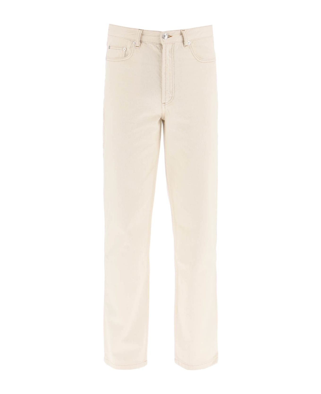 A. P. C. Martin jeans in pure cotton denim with contrasting stitchings, characterized by the 90s-inspired straight-leg cut. Five-pocket design, belt loops and front closure with zip fly and silver-finished metal embossed button. The model is 187 cm tall and wears a size 30.