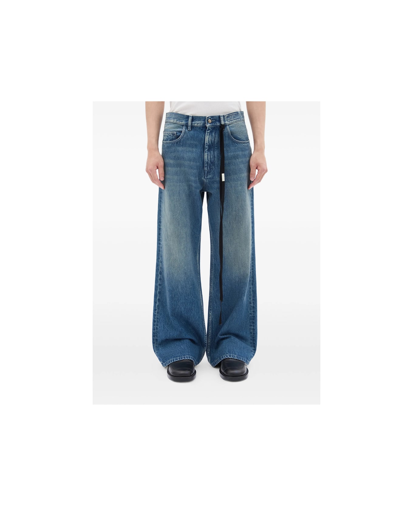 blue five pockets flared hem