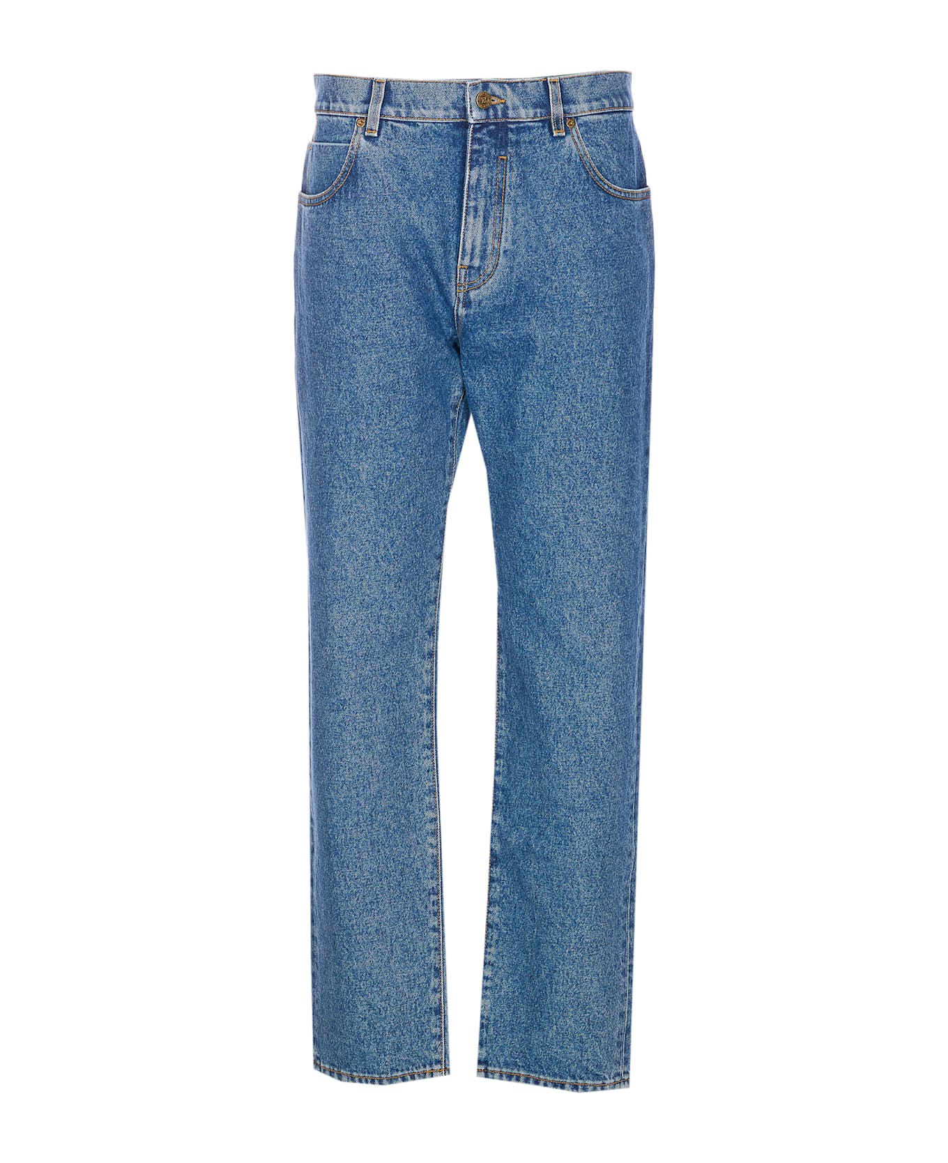 Balmain denim pants, button and zip closure, 5 pockets, wide leg, patch logo on the back Composition: 100% Cotton