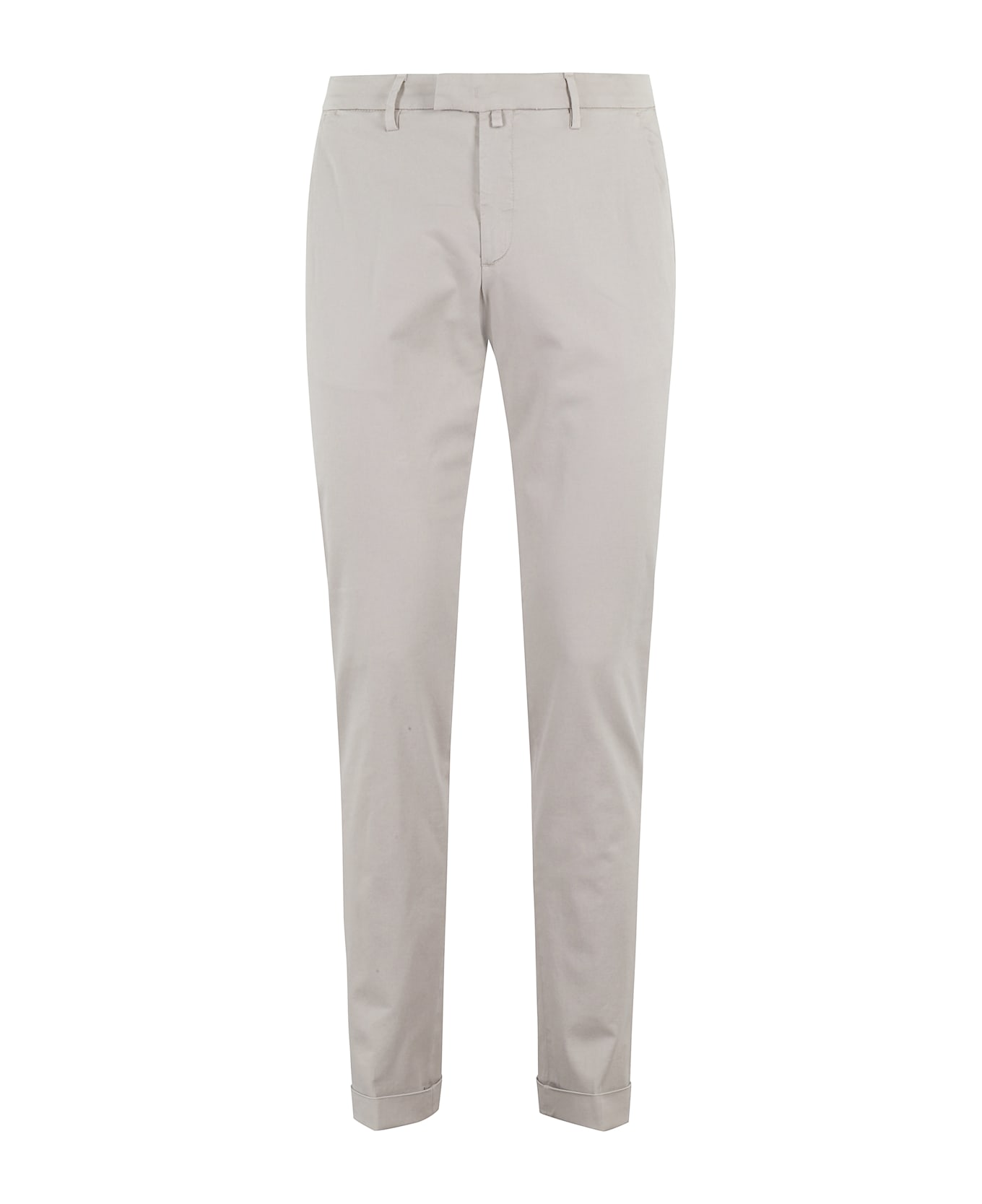 Pants - Bridle - Sand color - Knit fabric - Mid-rise waist with belt loops - Tapered leg - American style side pockets - Flat pockets on back - Turn-up hem - Zip and button front closure - Fitted fit.