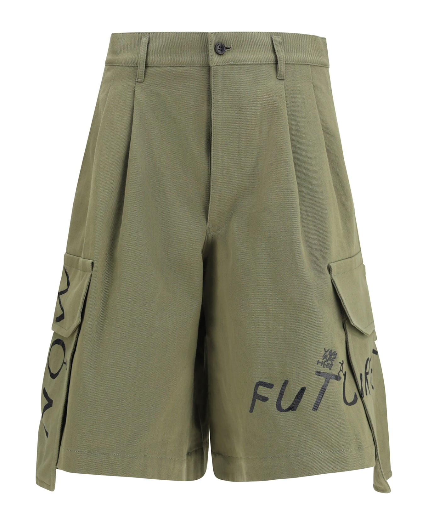 The cargo shorts with print by comme des garçons combine functionality with contemporary style. featuring printed details, side cargo pockets, buttoned back pockets, belt loops, and front pleats, they offer a distinctive and practical look, perfect for casual and trendy outfits.