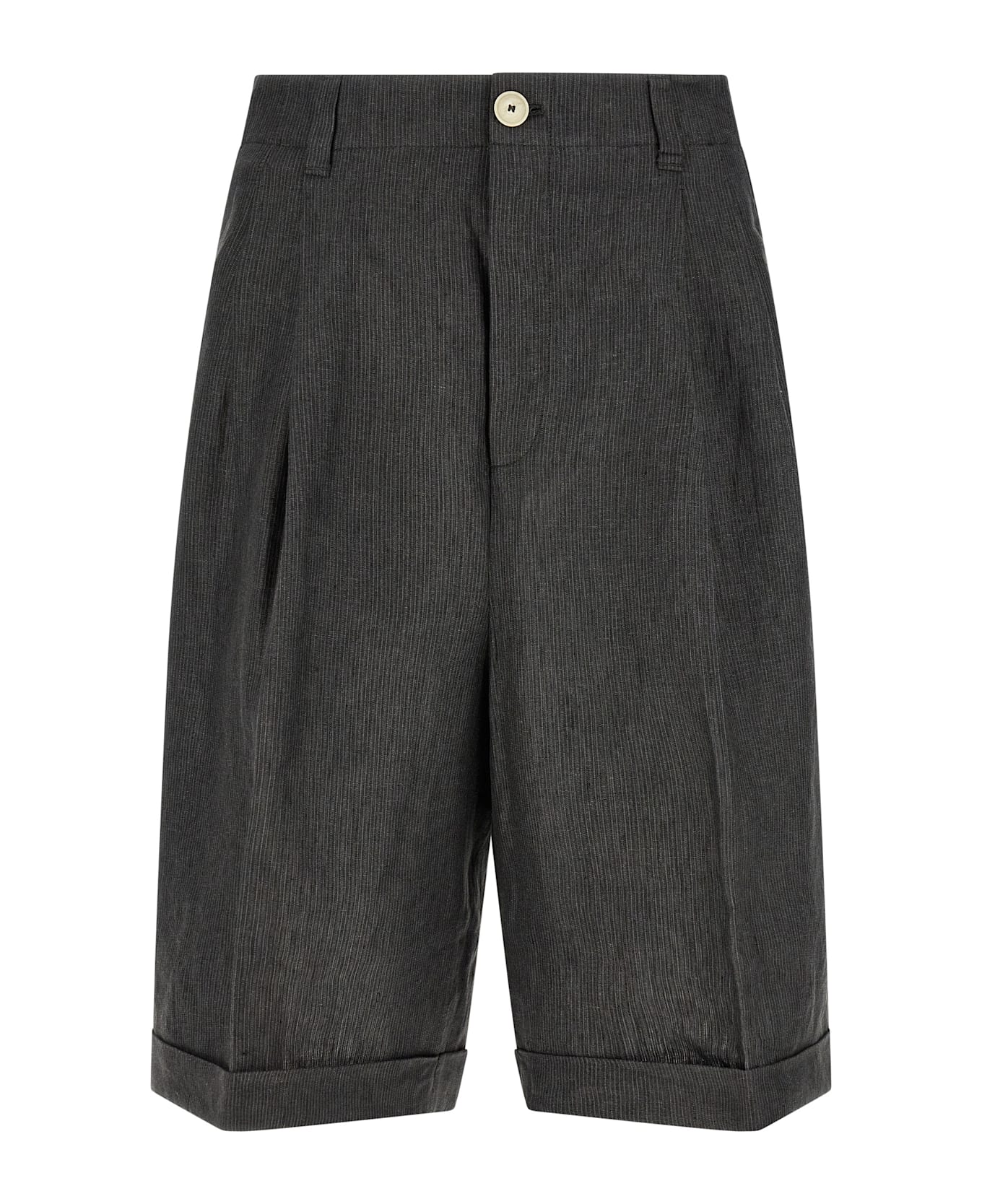 Micro striped linen Le Short Pastro bermuda shorts, pins, stretched pleat, wide leg, mid waist, tone-on-tone logo embroidery and front zip and button closure, front American pockets, back welt pockets, turn-up hem. Composition: 100% linen