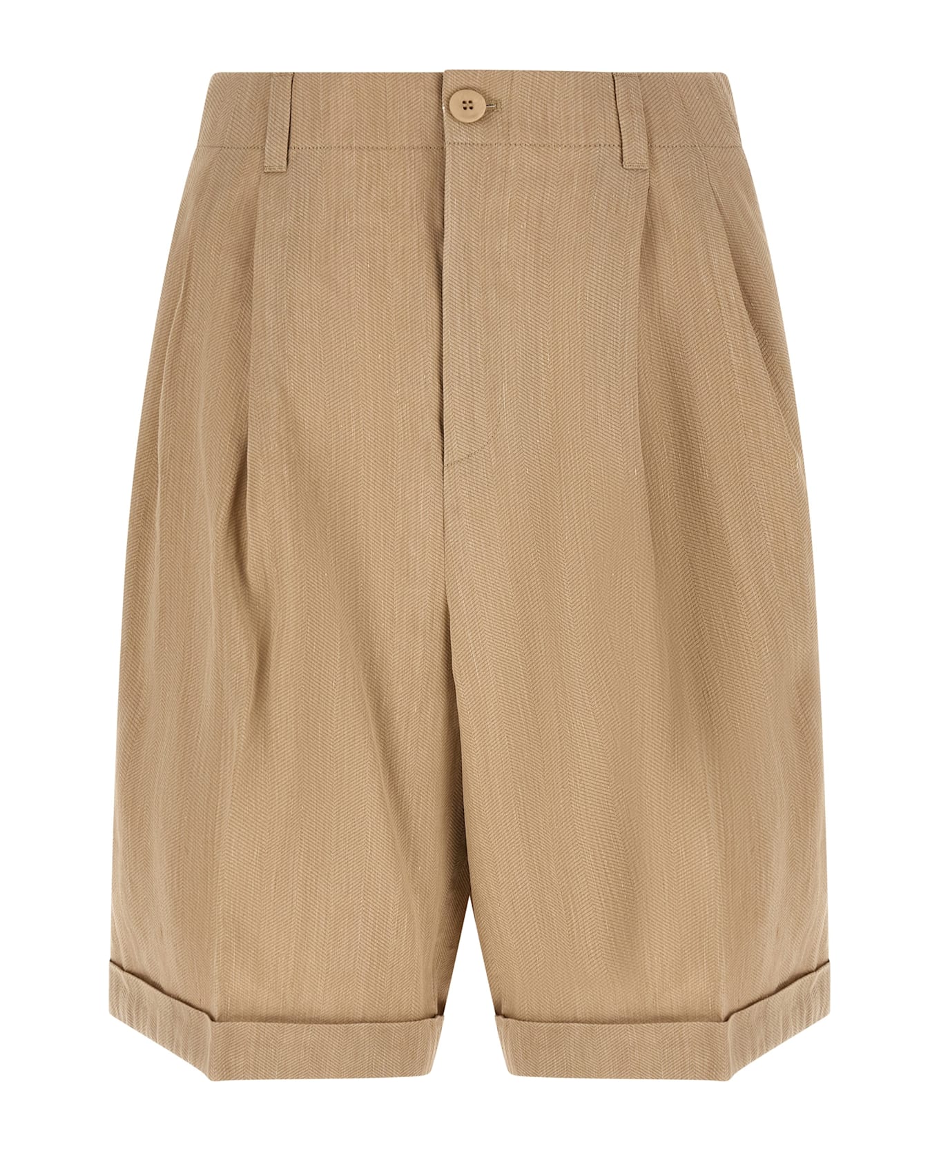 'Le Short Pastro' bermuda shorts in textured linen with chevron pattern, pince, stretched pleat, wide leg, mid waist, tone-on-tone logo embroidery and front zip and button closure, front American pockets, back welt pockets, turn-up hem.