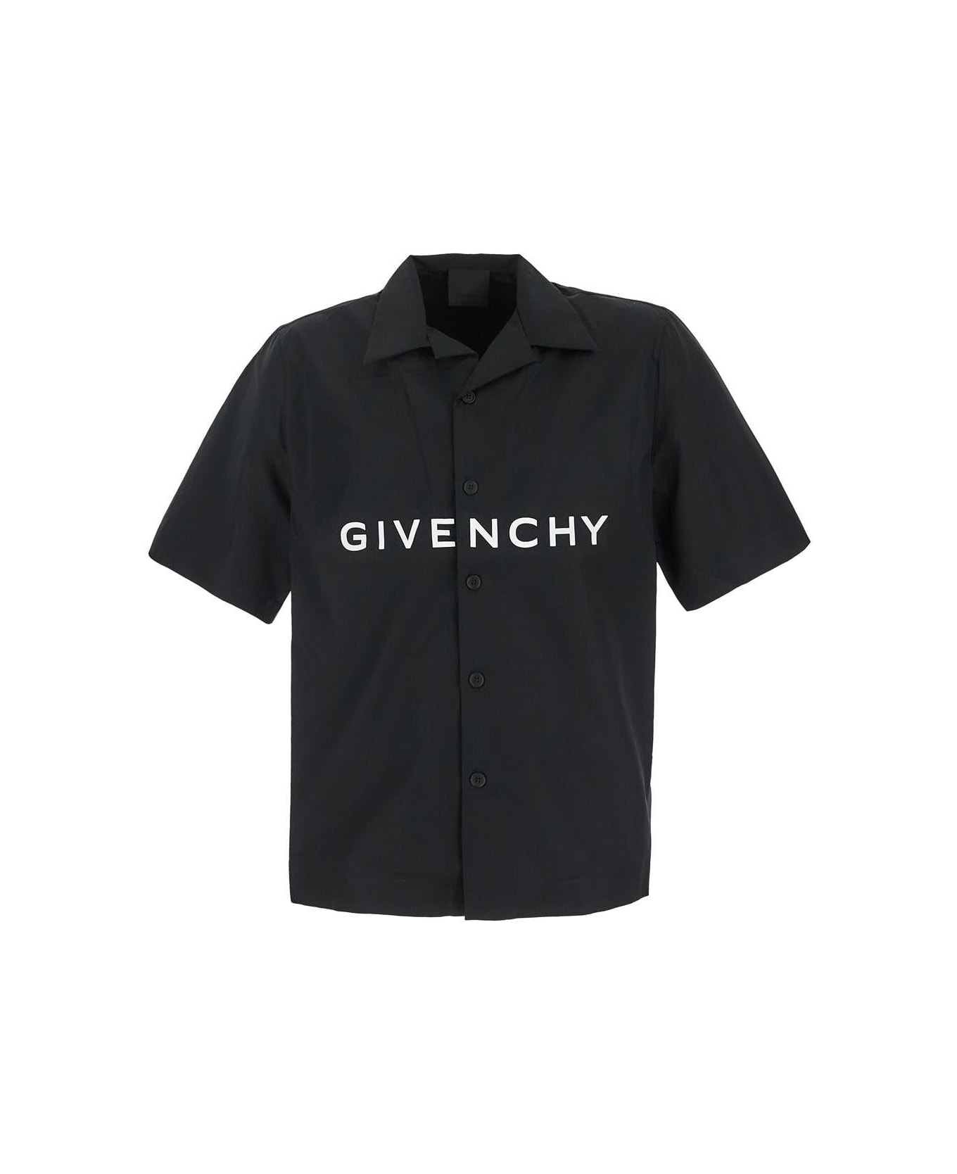 Givenchy men shirt in black cotton with white logo, short sleeves and oversize fit