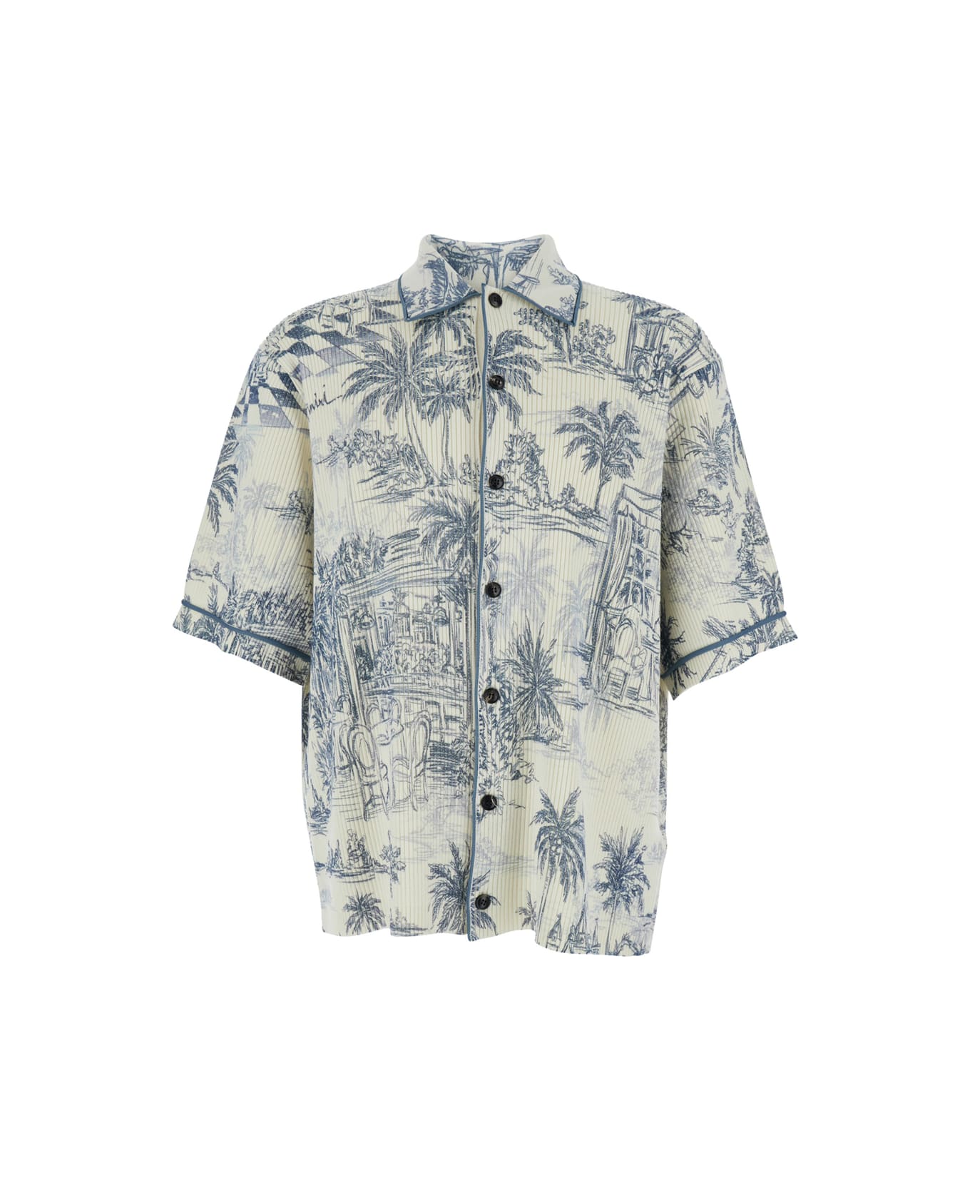 Shirt Multicolor All-over print Classic collar Button closure Short sleeves Straight hem Wool Relaxed fit