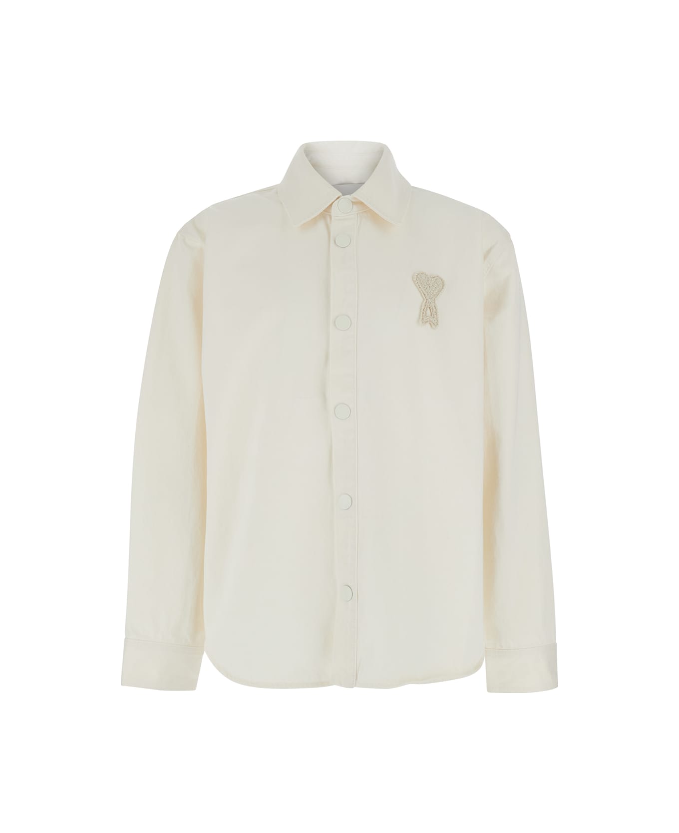 Overshirt with knitted details, in white. It features a classic collar and a front button closure. Long sleeves with adjustable cuffs. The back has a simple design with no particular details. Made of cotton. Regular fit. Composition: