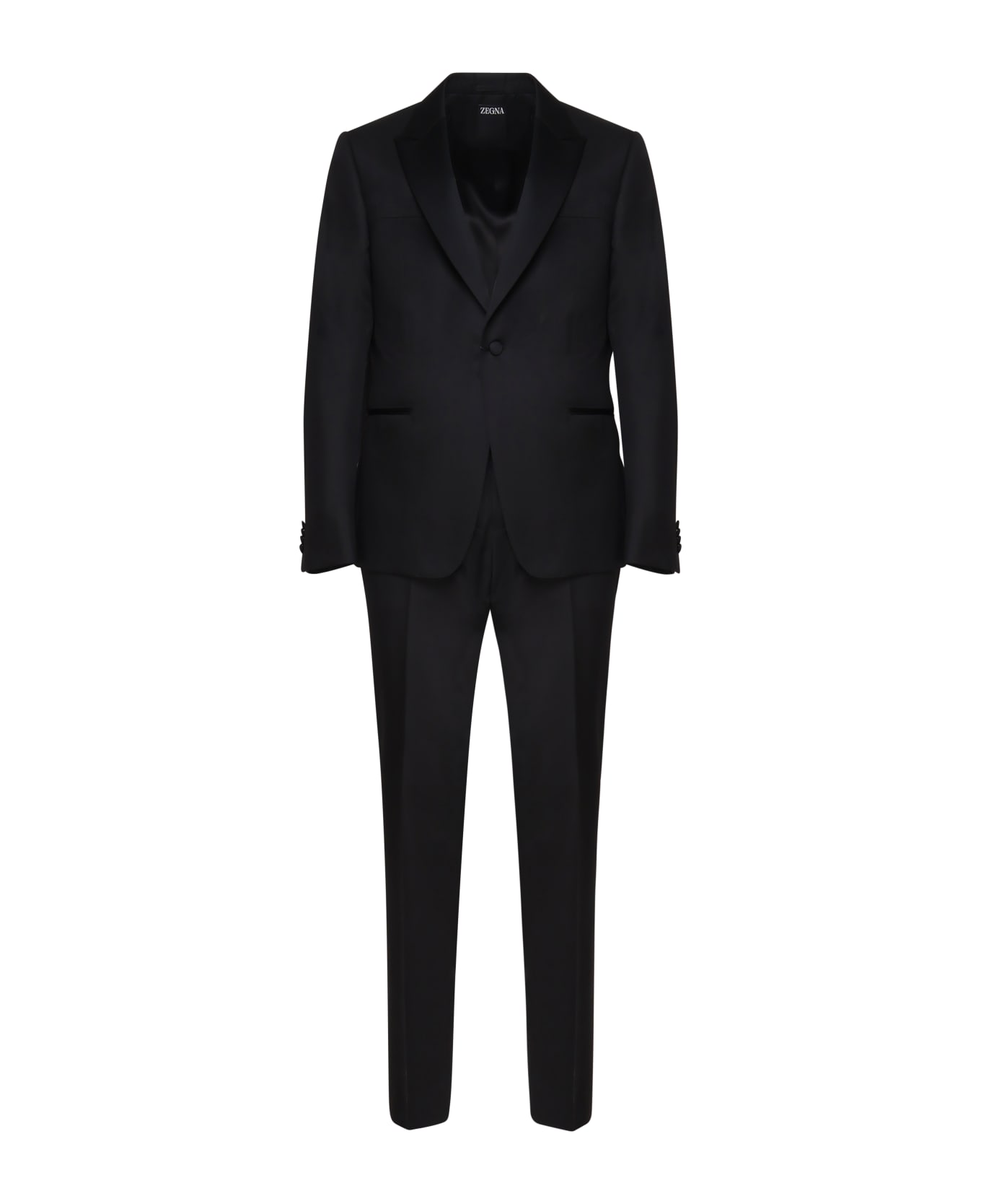 -Classic dress -Single-breasted jacket closure -Cigarette cut trousers -Side welt pockets -Made in Italy -Colour: Black Composition: 100% Wool
