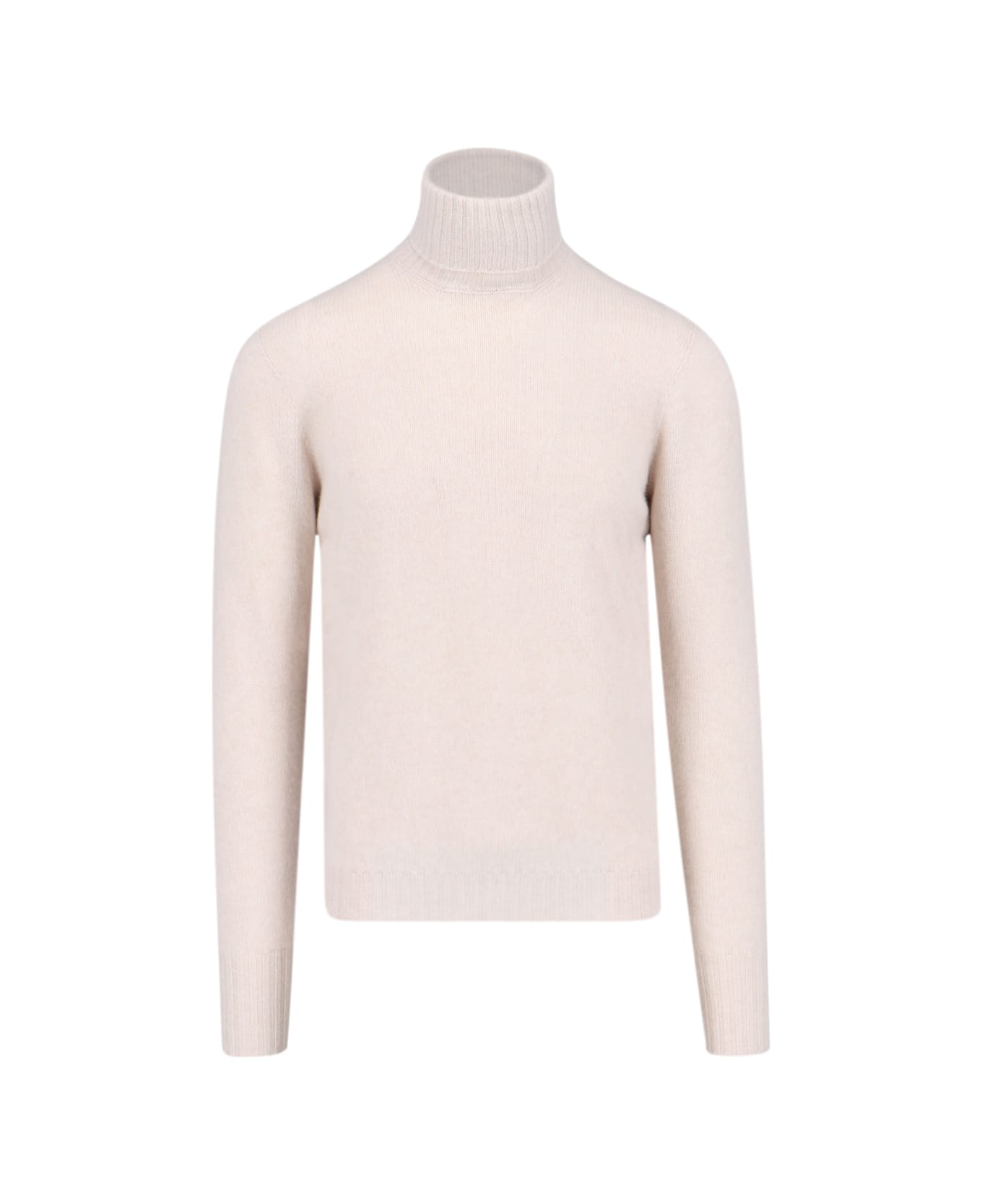 Drumohr cream cashmere turtleneck sweater with ribbed trim, straight hem