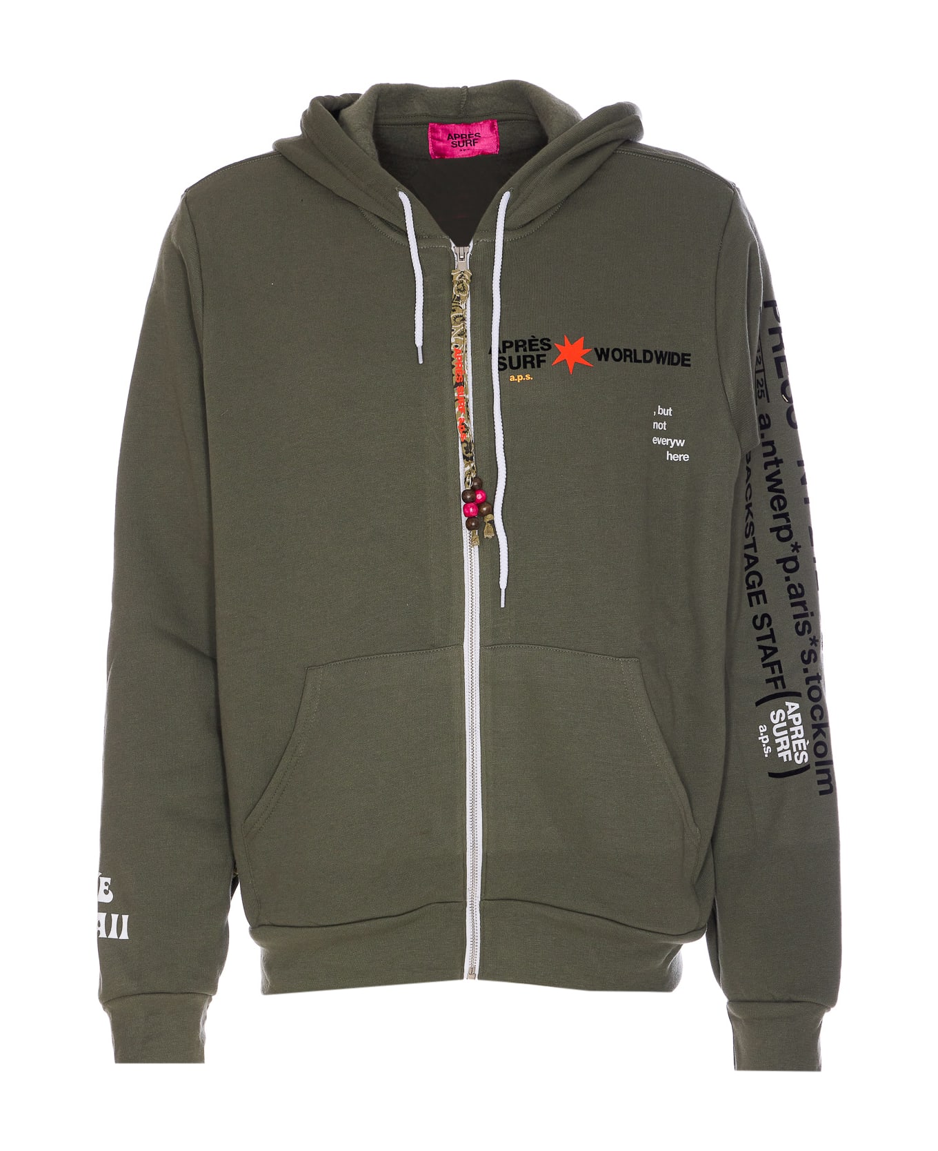 Apres Surf green Susan hoodie, zip closure on the front, hood with coulisse, long sleeves, print on the front, lateral pockets, Bandana print