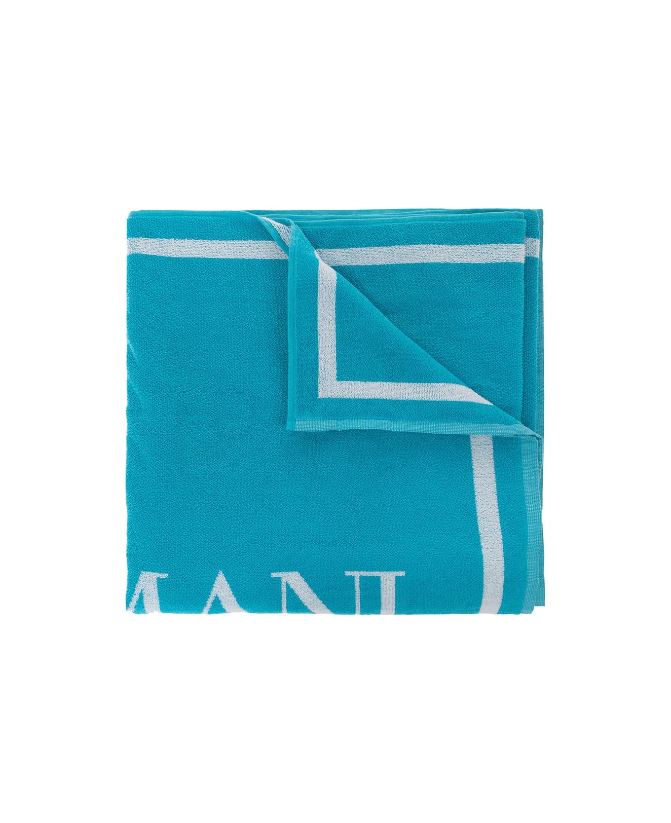 Blue towel from Emporio Armani. Crafted in terry cotton, this item showcases the brand's logo in white. Composition: 100% Cotton