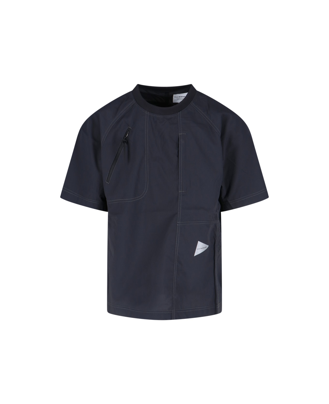And Wander 'Pullover' black nylon crew neck t-shirt with short sleeves, two chest zip pockets, grey logo print on the front, logo label on the back, straight hem. Composition: 100% Cotton