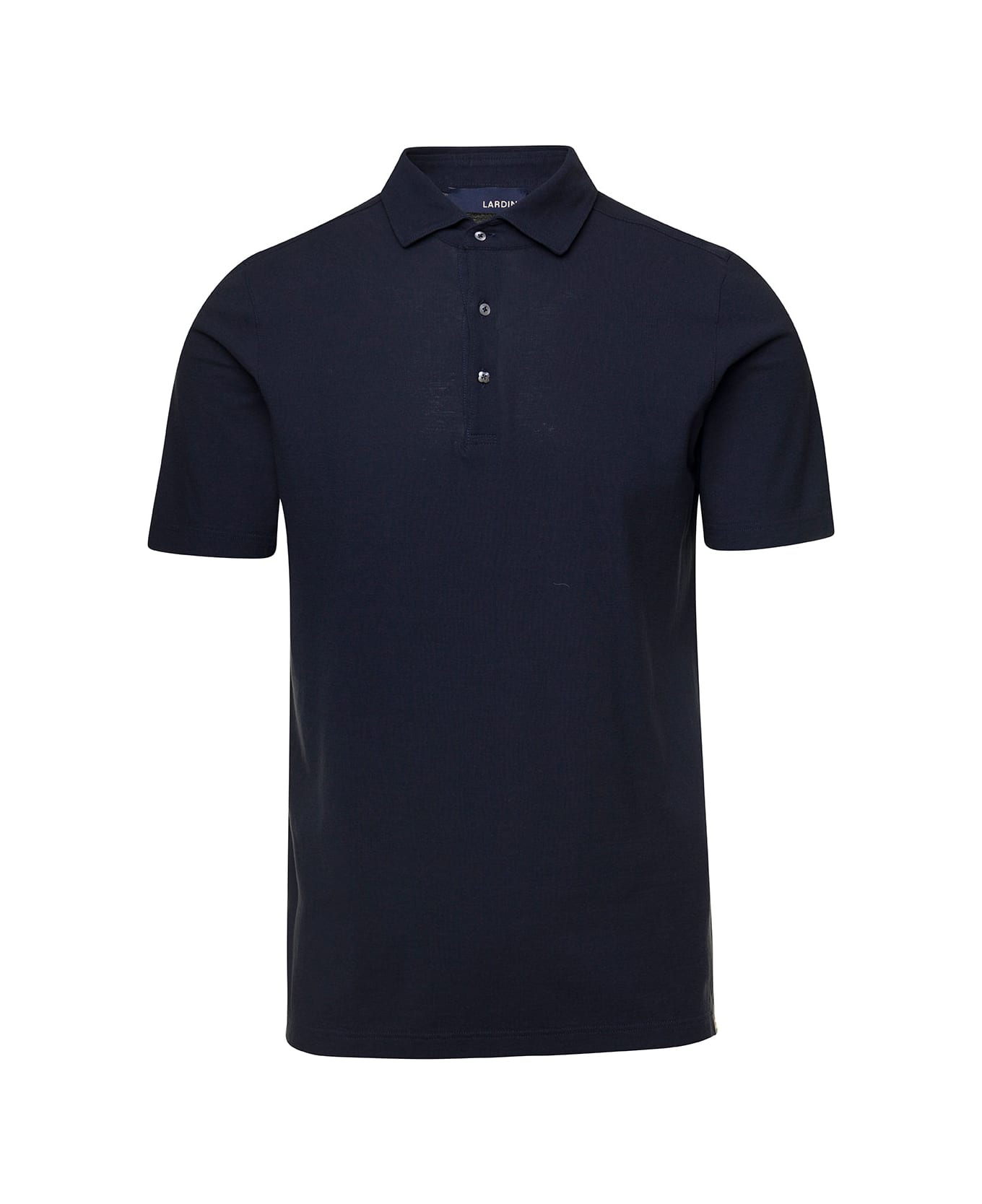 Polo shirt Classic collar Front button fastening Tonal buttons Short sleeves Straight hem Tonal sttiching Contrasting logo patch Blue Cotton Slim fit