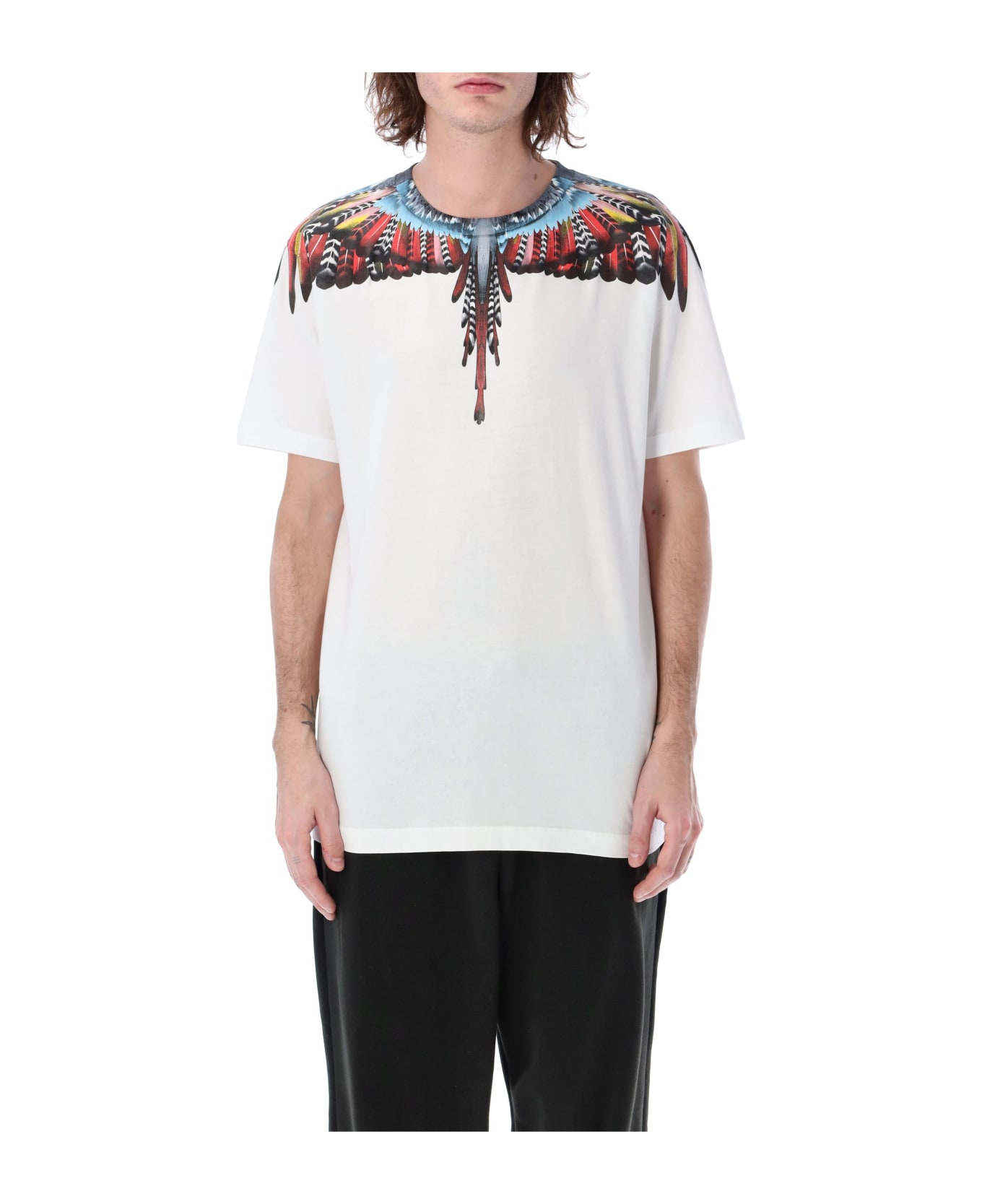 Cotton Grizzly Wings T-shirt By Marcelo Burlon County Of Milan. Featuring: Crew Neck Short Sleeves Multicolor Grizzly Wings Print At Shoulders Regular Fit The Model Is 1,90 M Tall And He's Wearing Size L