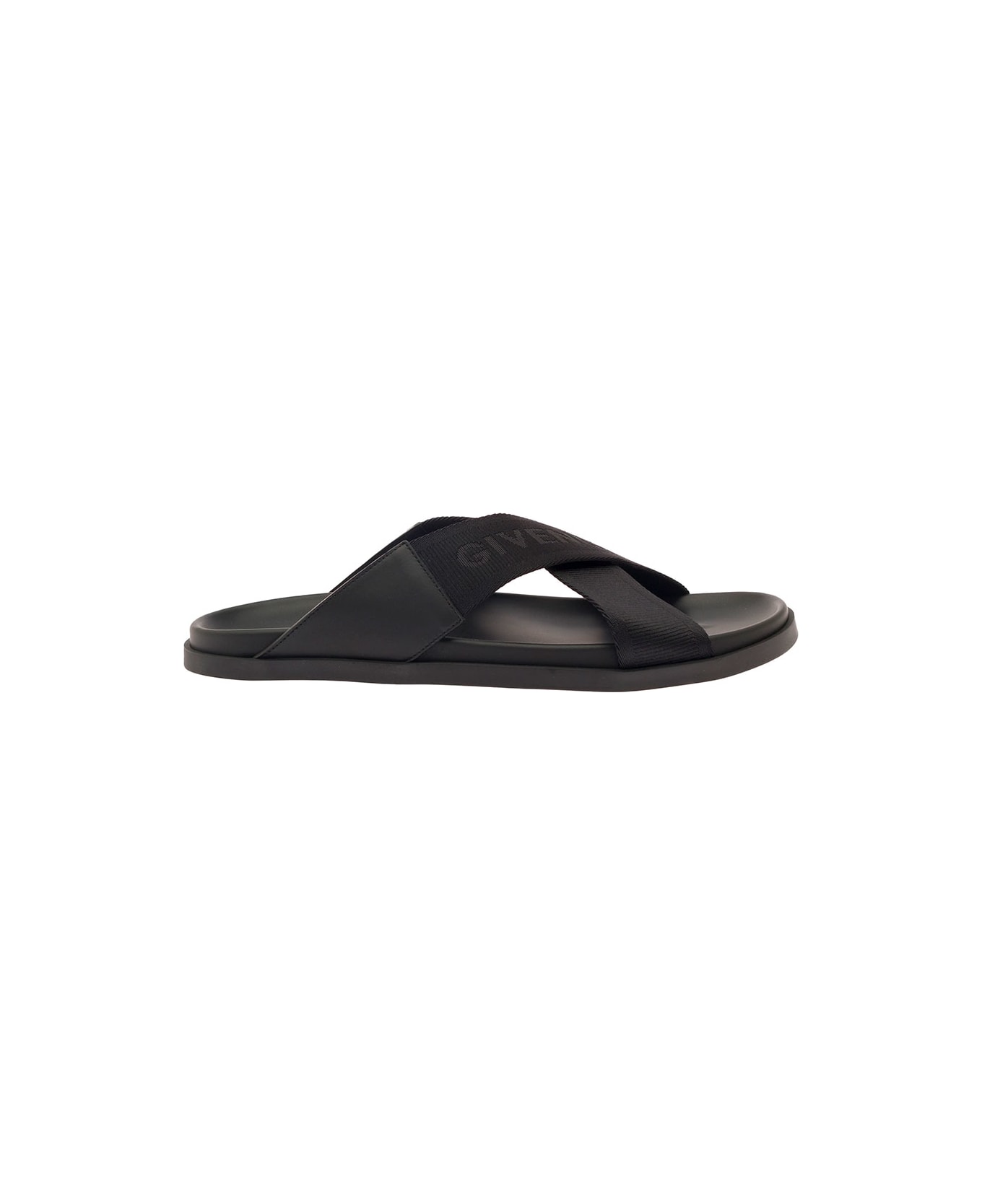 Black Sandals With Branded Criss Cross Straps In Nylon Blend Man