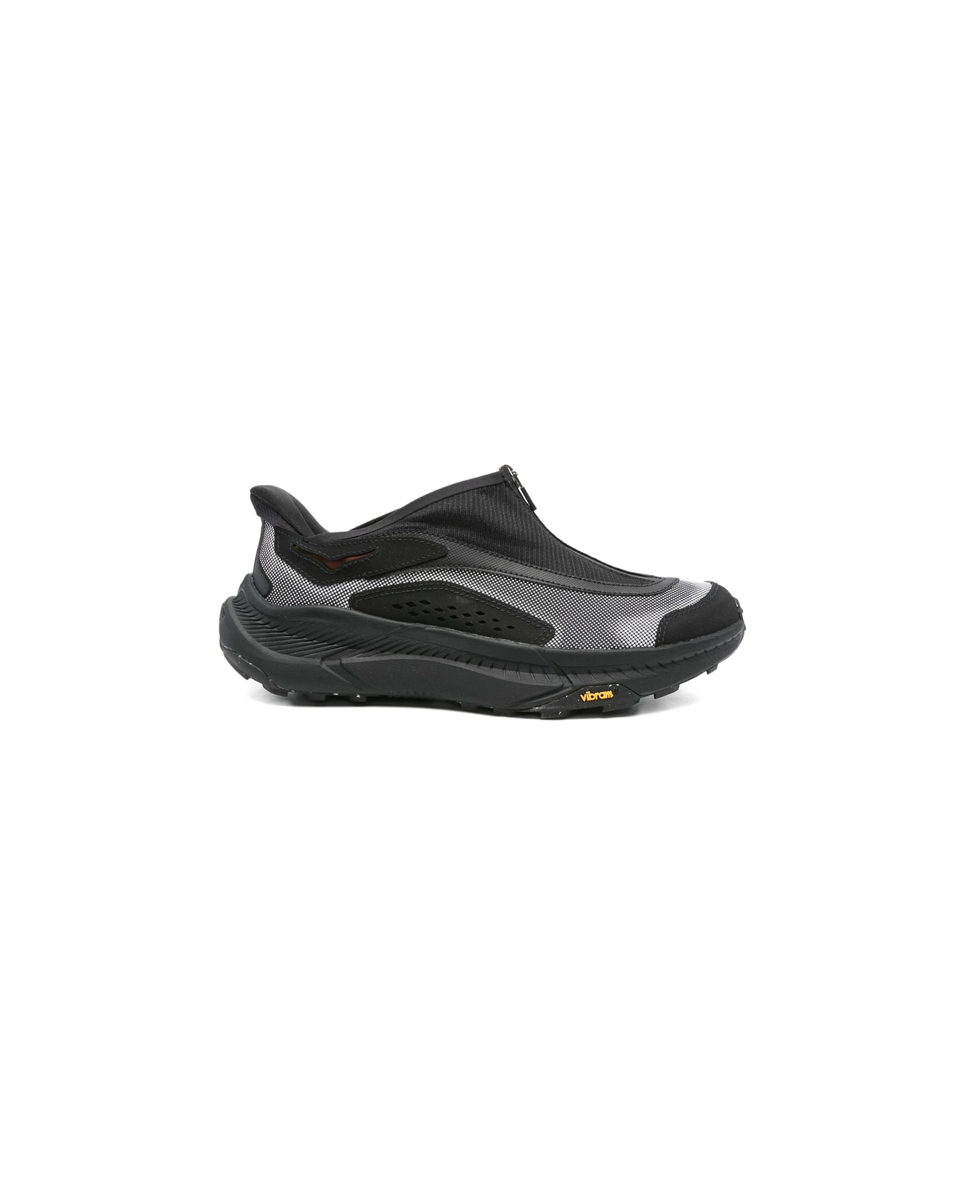 black mesh upper zip closure perforated details rubber sole sculpted midsole