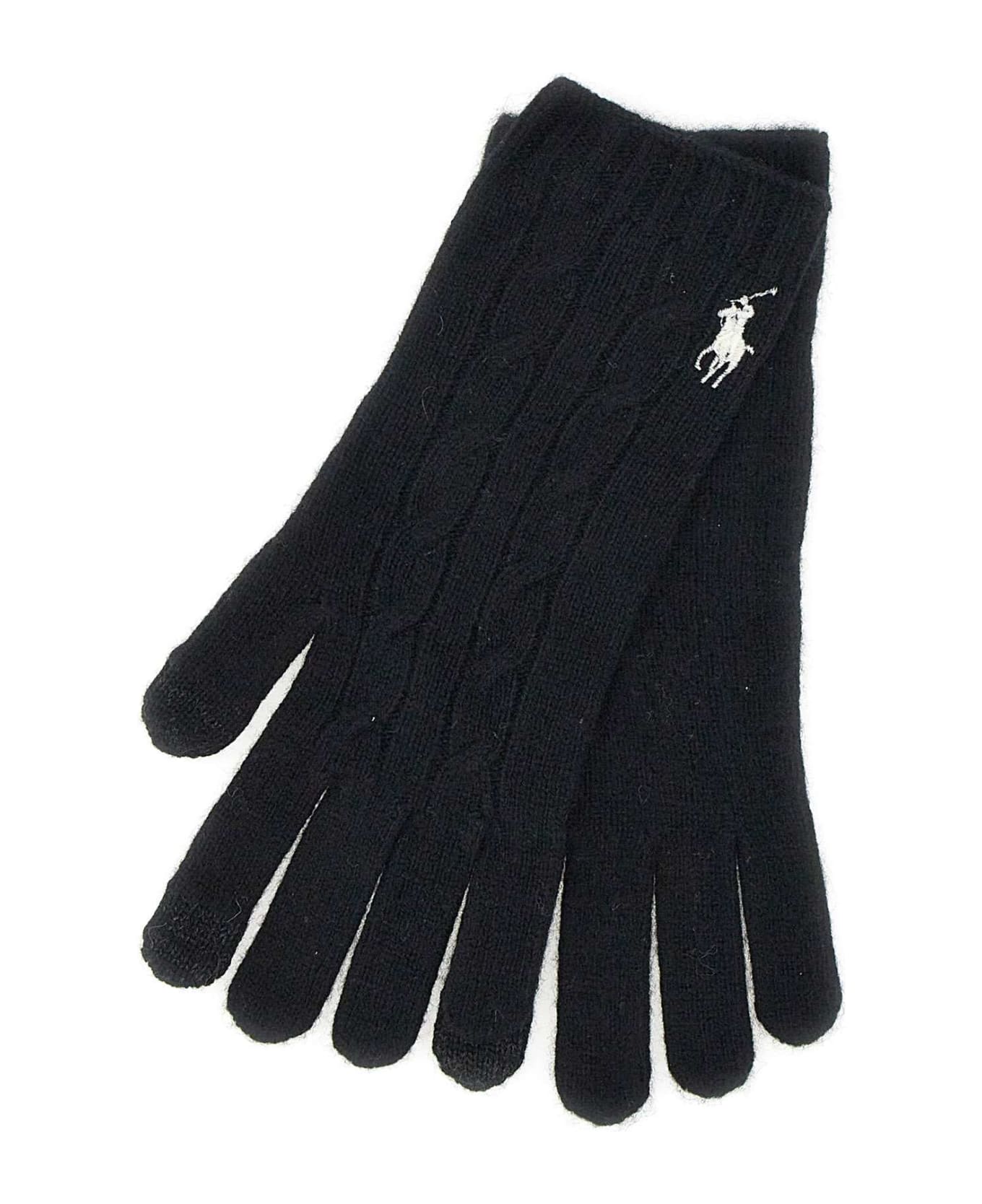 Polo Ralph Lauren "Cablet Touch" women's wool and cashmere gloves, black, braid work, logo on front, ribbed hems, ideal for the cold season. One size.