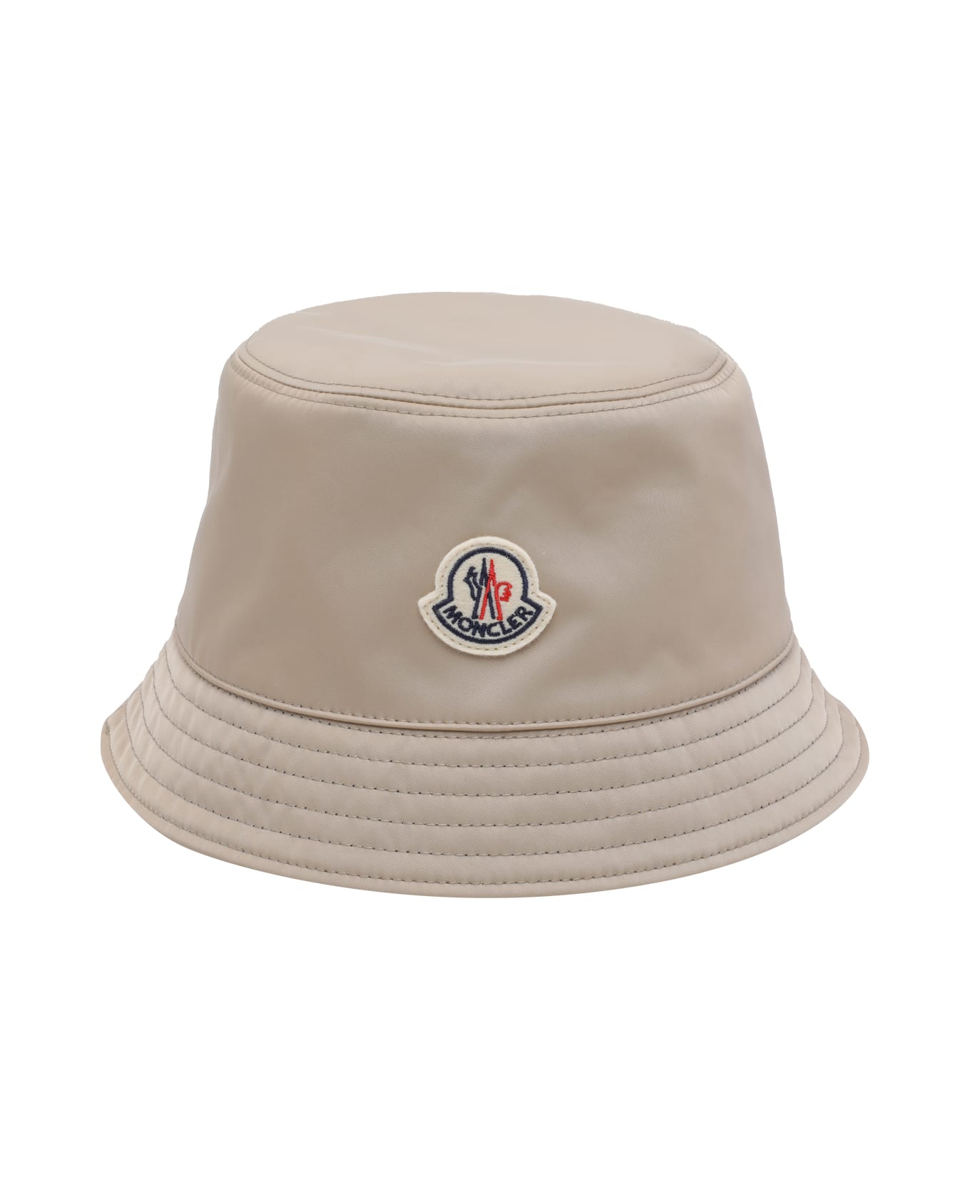Moncler beige and blue reversible Logo bucket hat, frontal patch logo