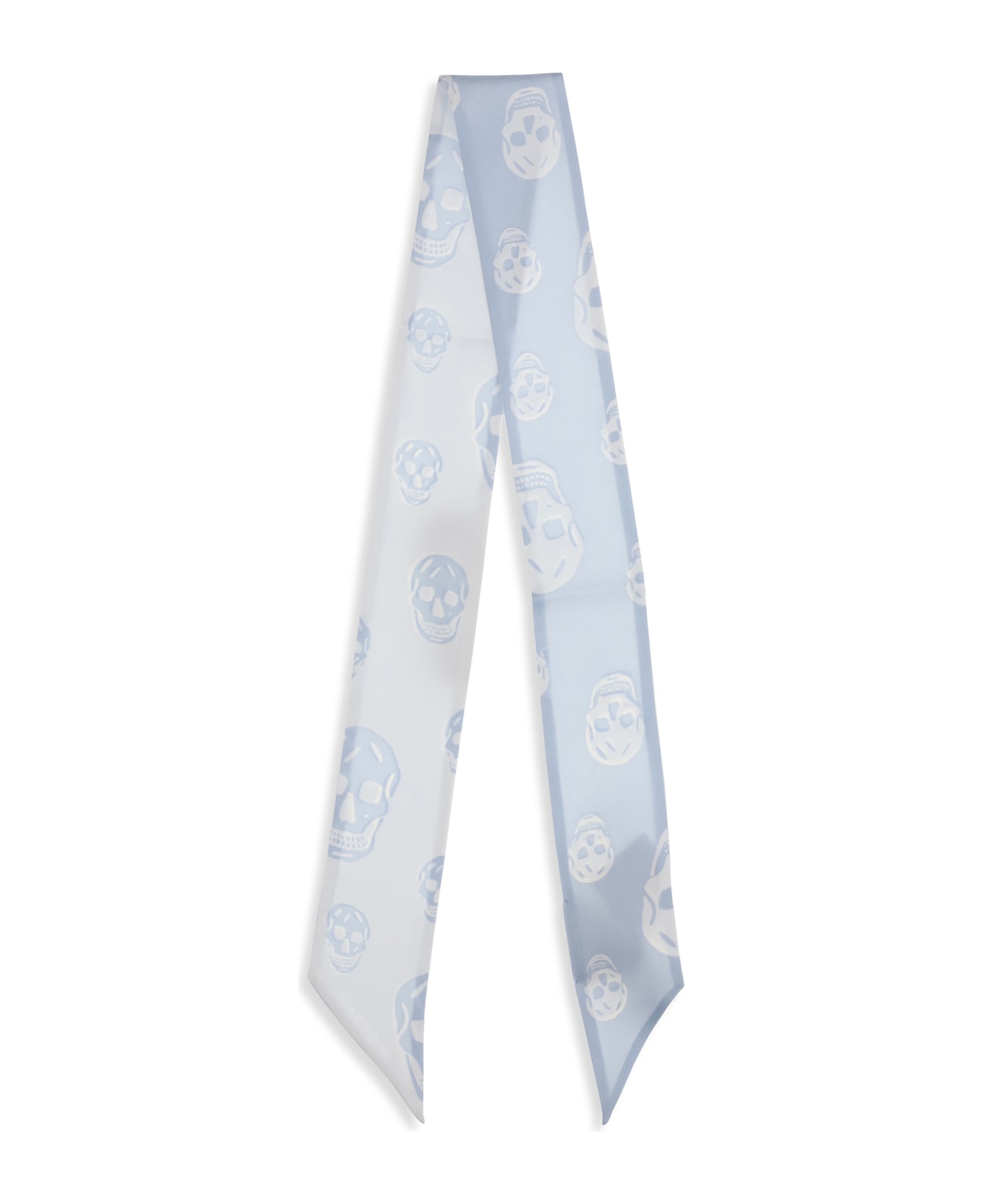 The skull ribbon scarf by alexander mcqueen is made of silk twill with an all-over black and ivory skull pattern. finished with the mcqueen logo on the bottom, it can be wrapped around the wrist or over bags from the collection, adding a distinctive and versatile touch to the look. Composition: 100% % Silk