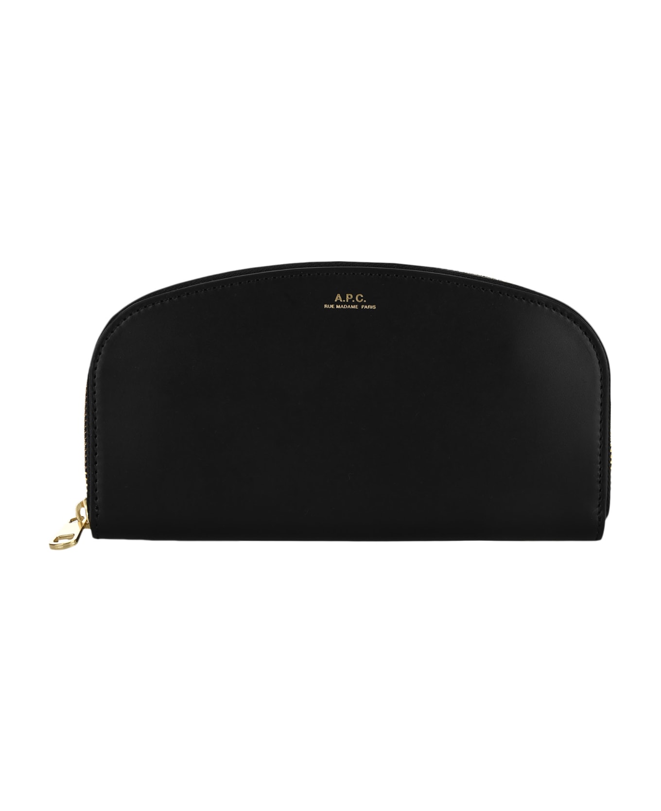 Demi-lune Wallet By A. p. c.. Featuring: -rounded Shape -zip Closure -a. p. c. Puller -compartment Divided Into Two Gusseted Pockets -zip Coin Pocket In Middle -banknote Pocket And Six-position Cardholder On Each Side -goldtone 'a. p. c. Rue Madame Paris' Logo Embossed On Front