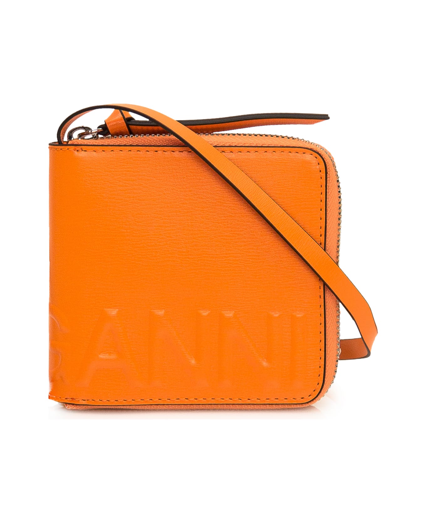 Orange wallet in certified recycled leather. Zip closure. Detachable strap: Embossed logo on the front.