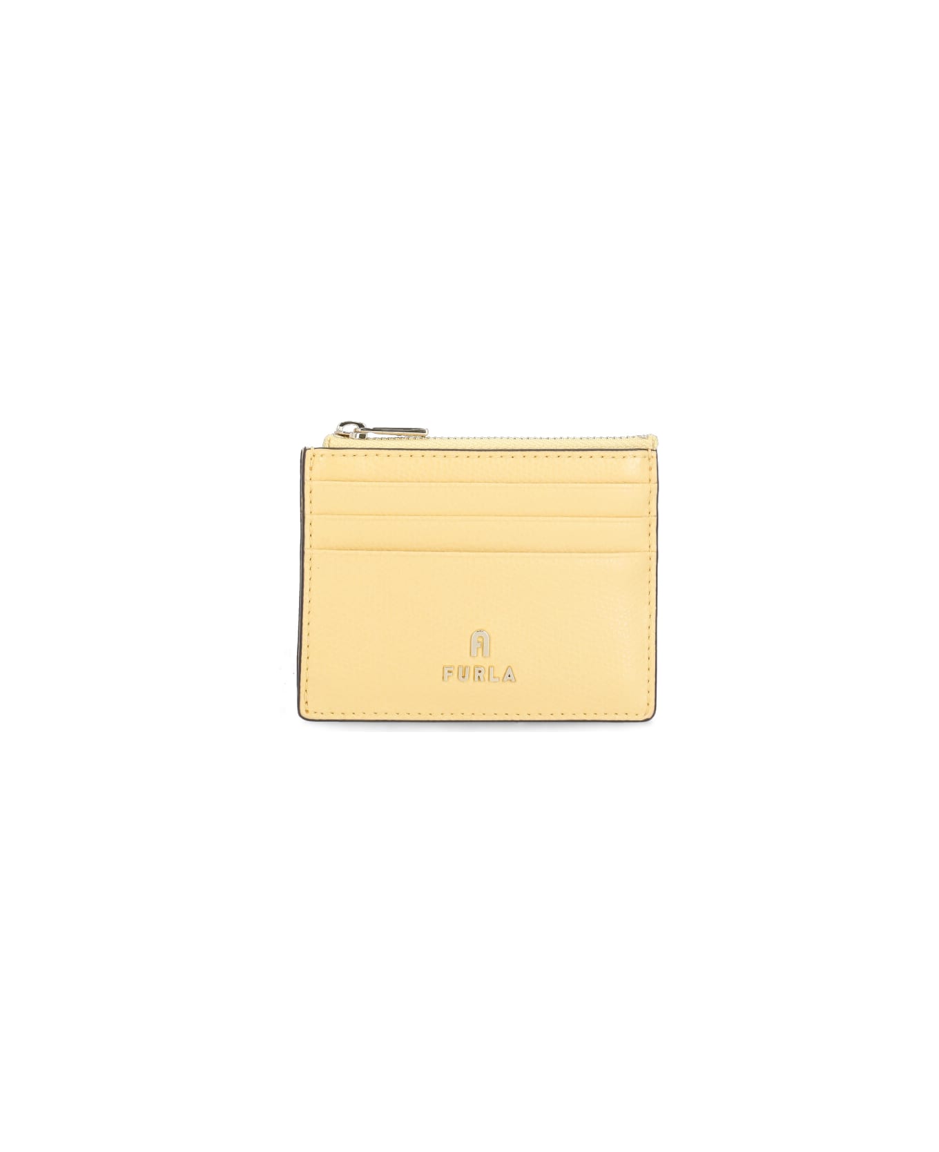 - Yellow Furla leather card holder for woman - Zip fastening - Six card pockets - Front metal gold logo