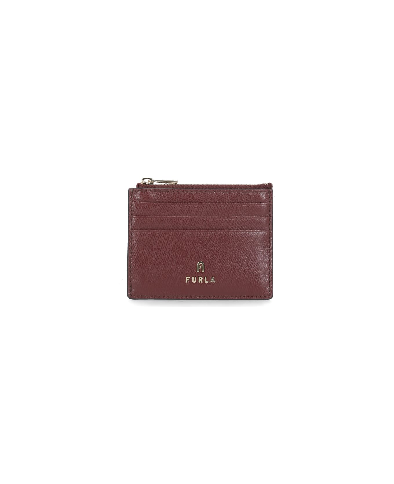- Bordeaux Furla leather card holder for woman - Zip fastening - Six card pockets - Front metal gold logo
